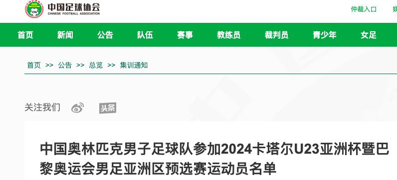 4月5日,中国足协公布了中国奥林匹克男子足球队参加2024卡塔尔U23亚洲杯暨巴黎奥运会男足亚洲区预选赛运动员名单,武汉三镇队3名球员入选。