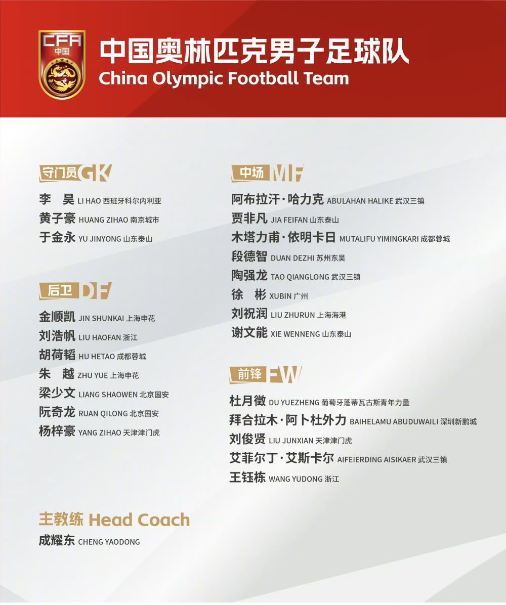 国奥队23人名单如下:
