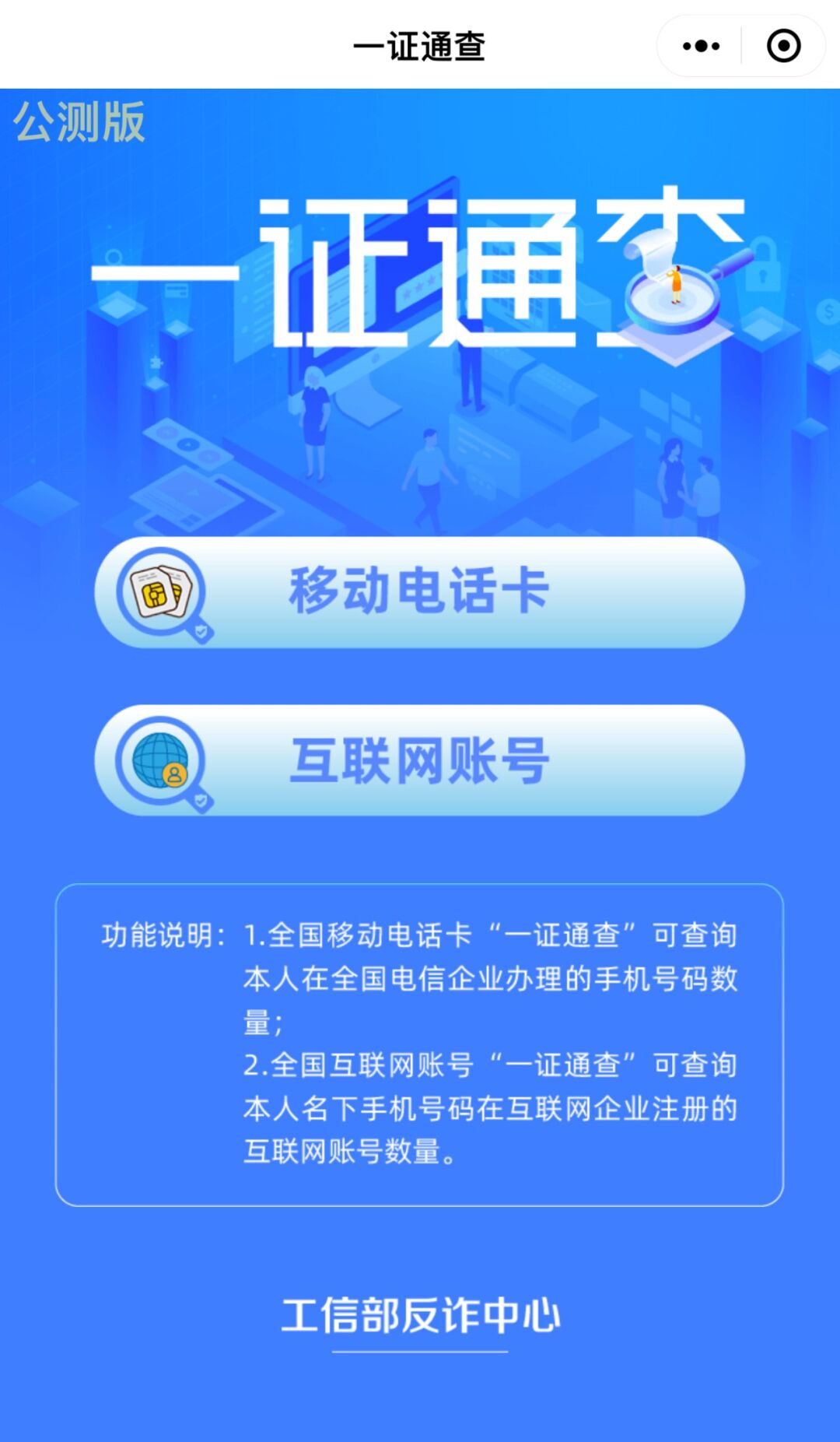工信部政务微信号“工信微报” 中“一证通查”服务。