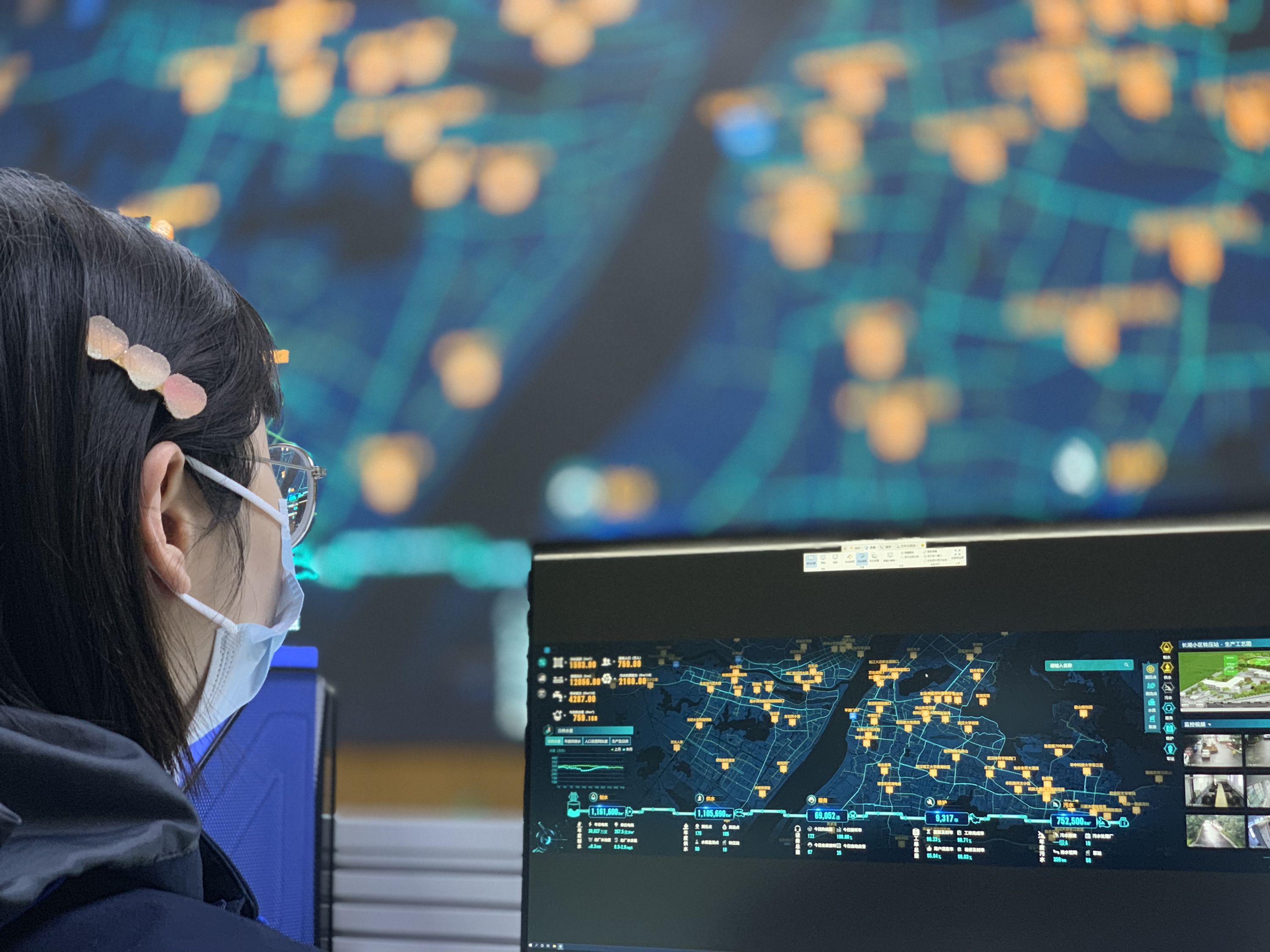 足有一面墙大的智慧水务屏幕。(市水务集团供图)