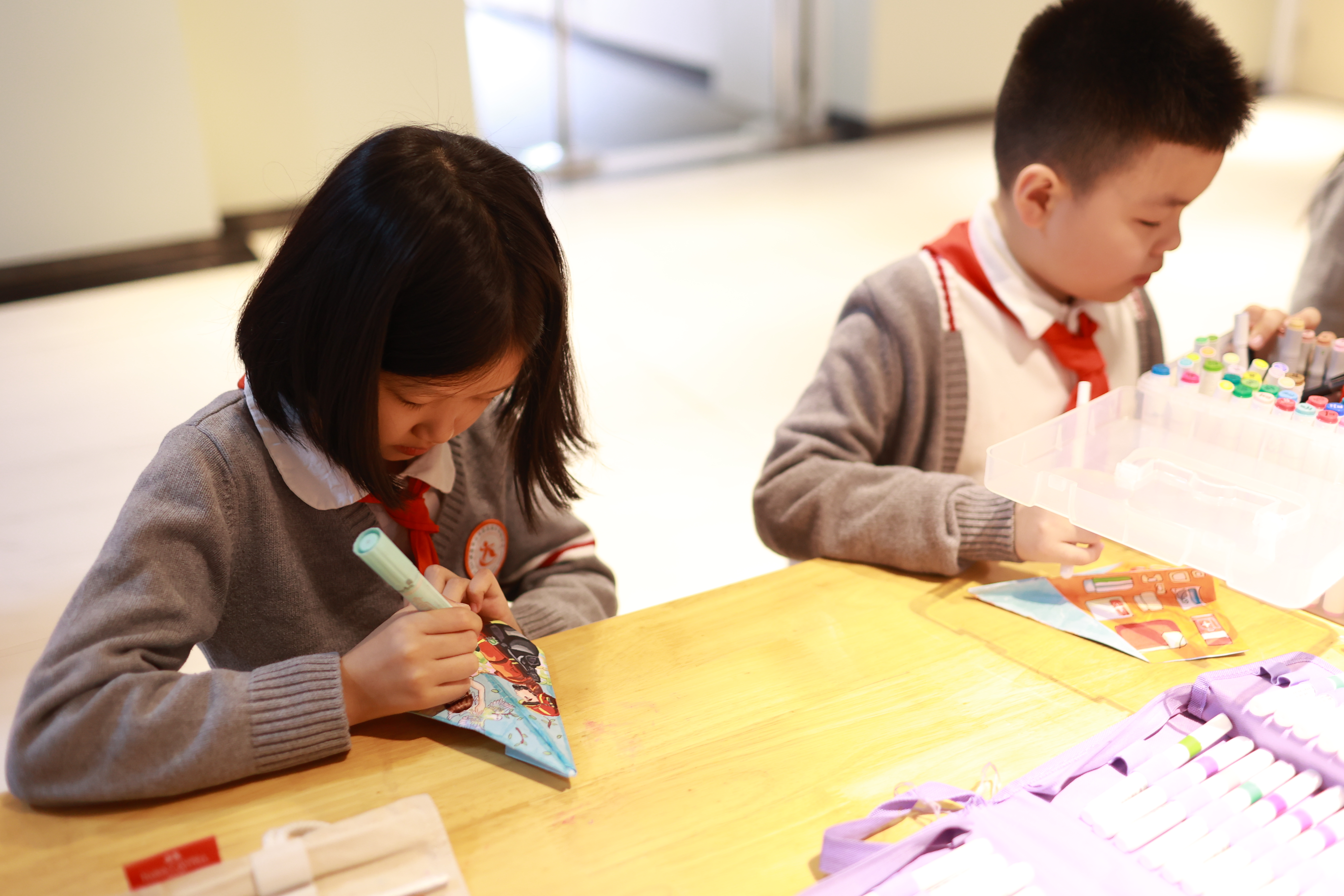 孩子们参加纸飞机涂鸦。