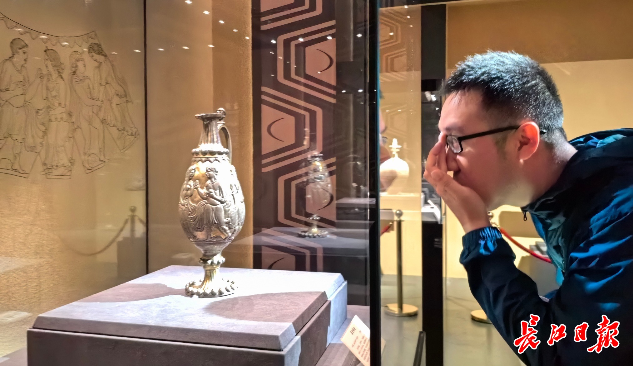 长江日报大武汉客户端4月30日讯(驻京记者柯立)“太幸运了,以前在书里、电视里看到过的国宝——北周鎏金银壶,今天我居然亲眼见到了原件!”4月30日,“贞观——李世民的盛世长歌”展览在国家典籍博物馆开幕,来北京旅游的湖北学生小林激动地说。