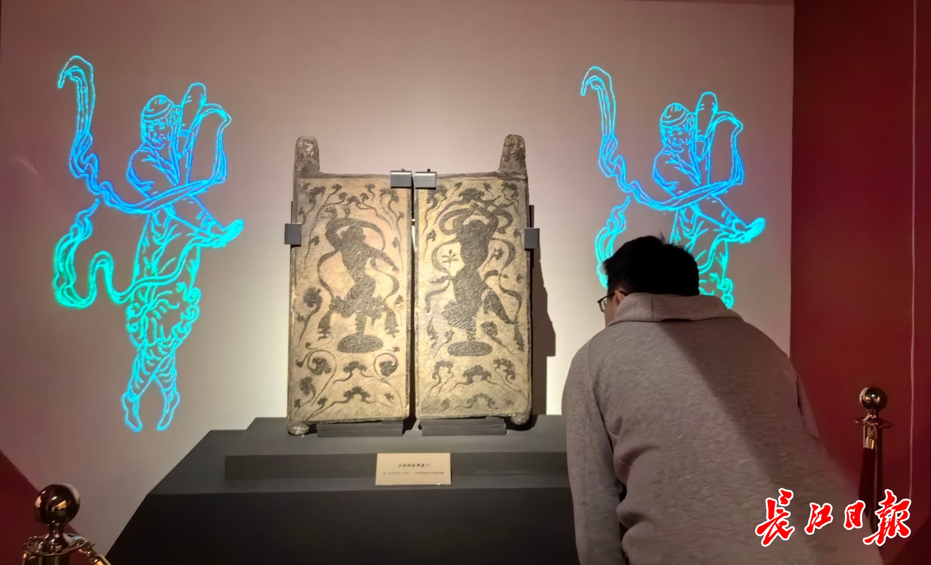 宁夏博物馆的一级文物石刻胡旋舞墓门。 记者柯立 摄