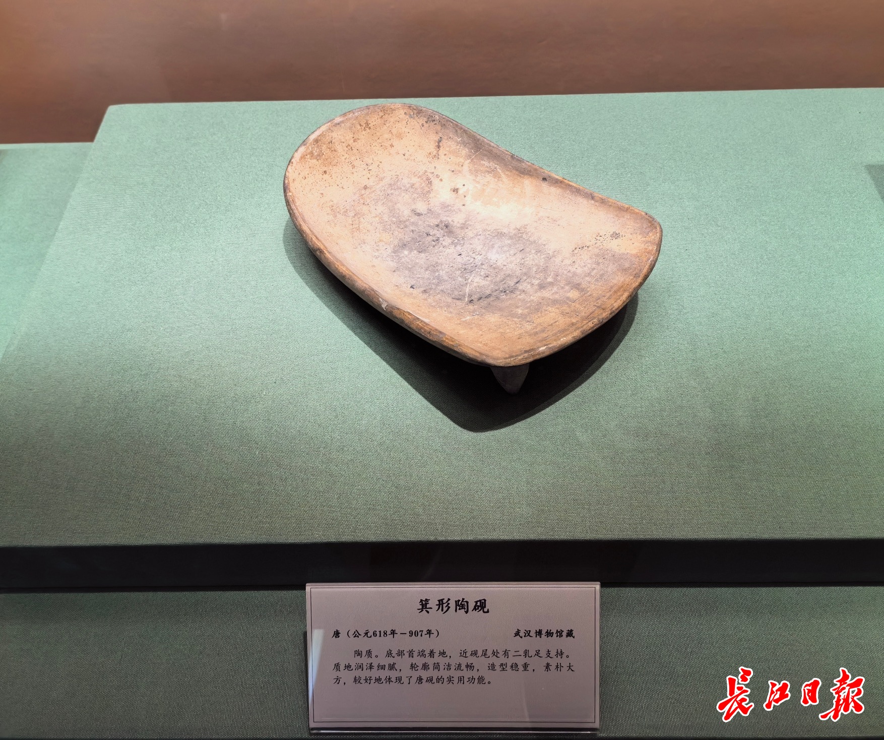 武汉博物馆珍藏的唐朝箕形陶砚。 记者柯立 摄