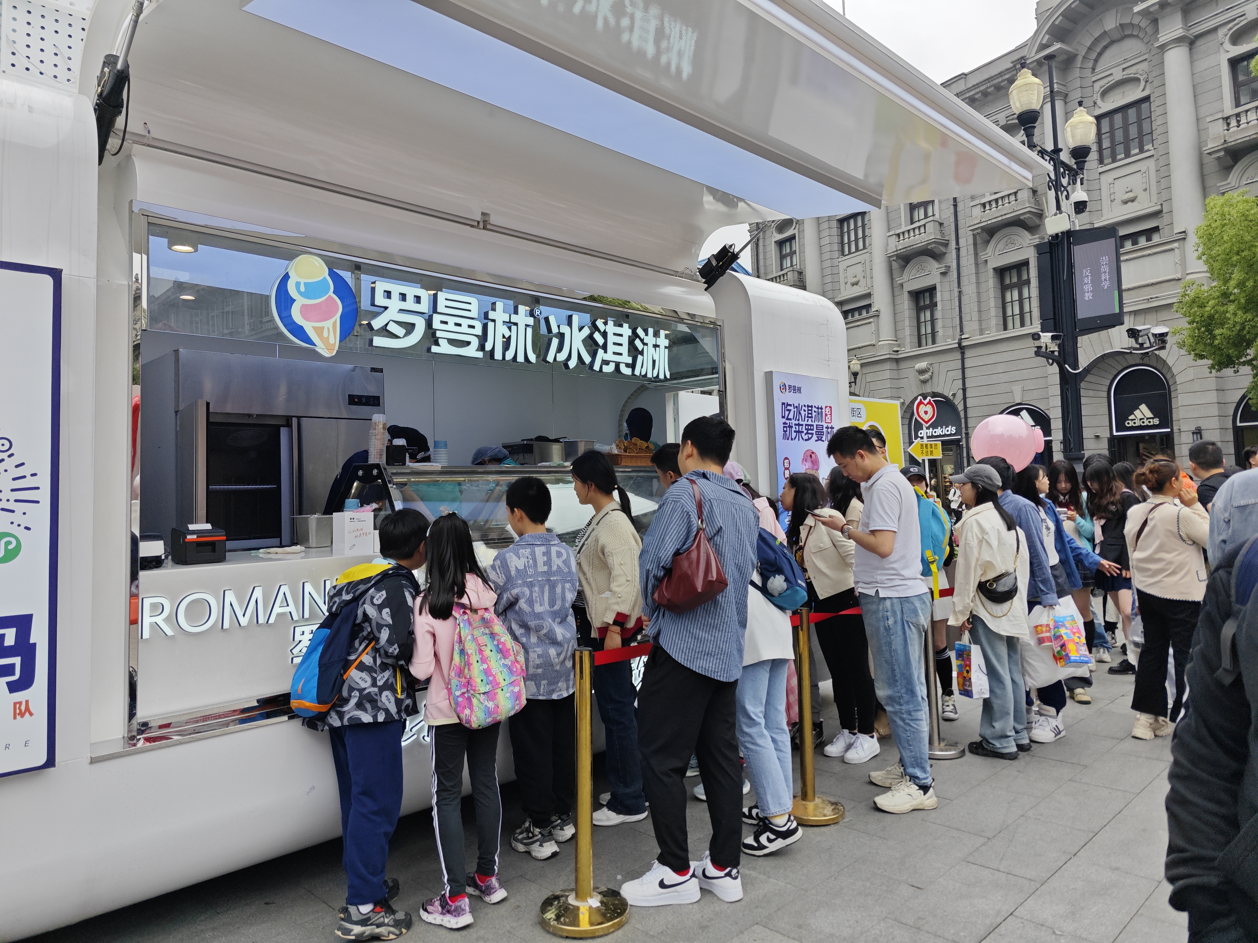 罗曼林冰淇淋车前排起长队。 见习记者陈星雨 摄