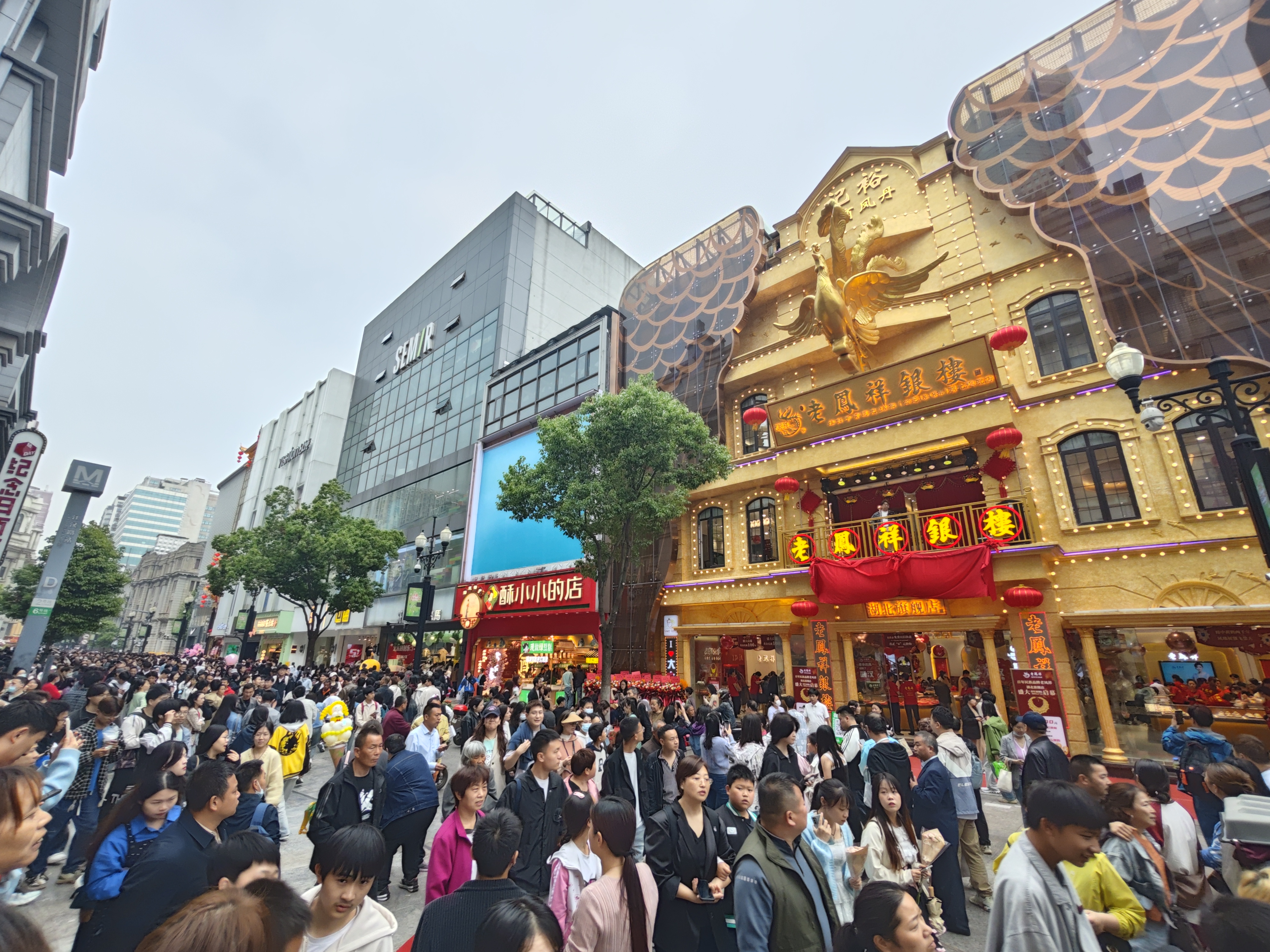 五一假期首日,江汉路上人潮涌动。 见习记者陈星雨 摄