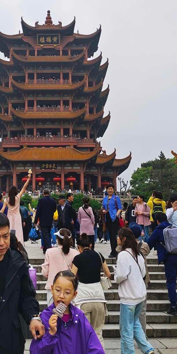 今天我去了一趟黄鹤楼,回家翻看手机里照片时,竟然发现其中有一张里面藏着三个“黄鹤楼”。前面的紫衣女孩正拿着“黄鹤楼”冰激凌,在津津有味地品尝着。而后面还有一个女孩,高高地举着“黄鹤楼”冰激凌,估计是前方有人在给她拍照。她们正好与不远处真正的黄鹤楼呼应着,人生处处都有偶遇的惊喜呀!