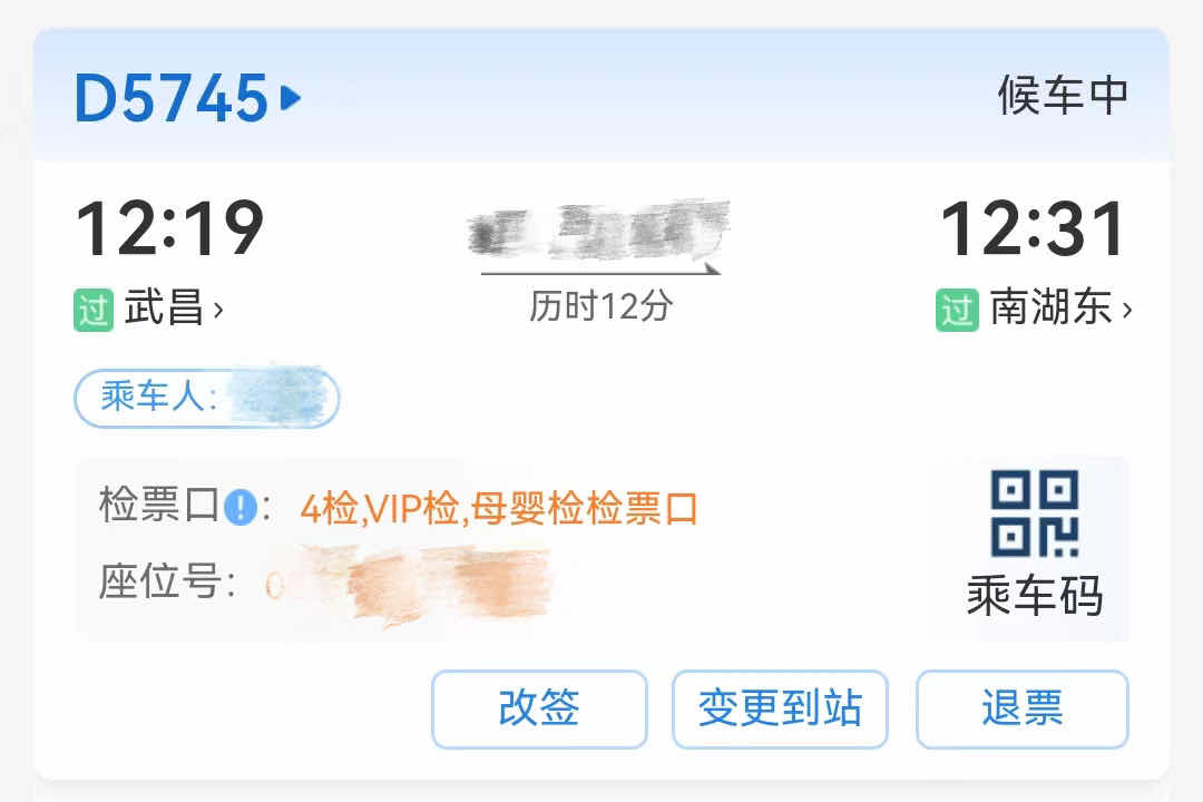 事情是这样的,假期在家我突然想去中南财经政法大学南湖校区背后的那条小吃街。我住在武昌火车站附近,过去一趟需要个把小时。于是,我尝试着去搜了一下有没有去南湖那边的列车。嘿!还真让我找到了——武昌火车站到南湖东站每天都有好几趟动车,全程在12分钟左右。我立马就买了12点19分那趟的D5745。