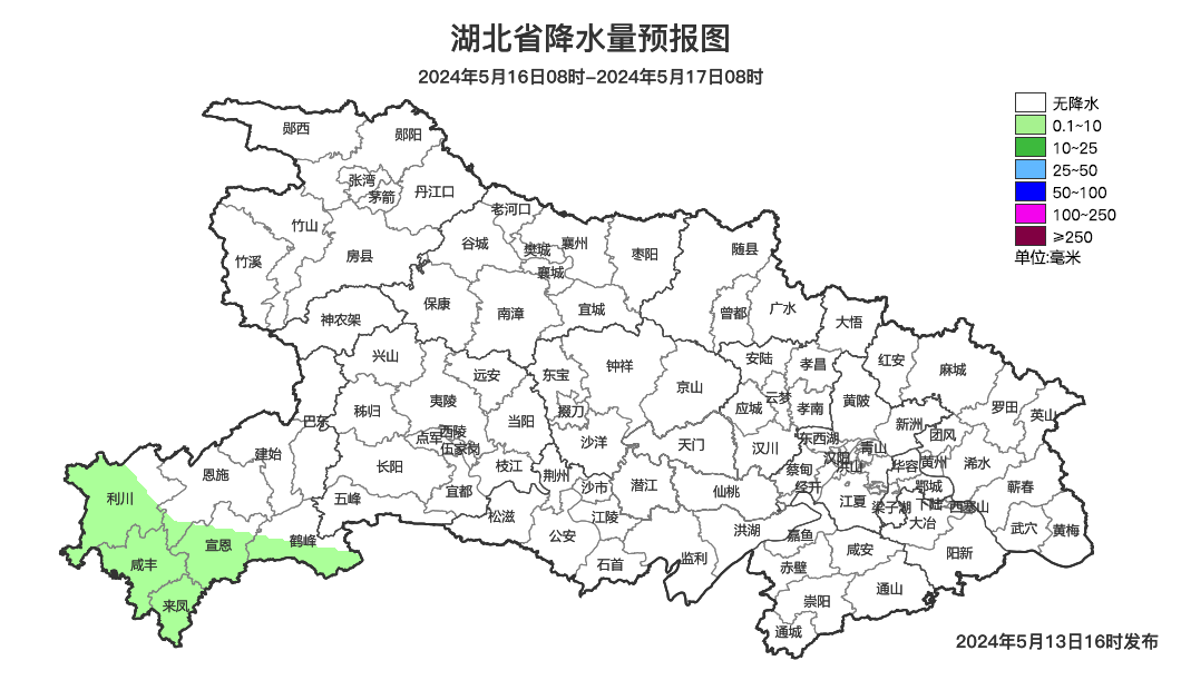 预报来源:武汉中心气象台2024年5月13日20时预报