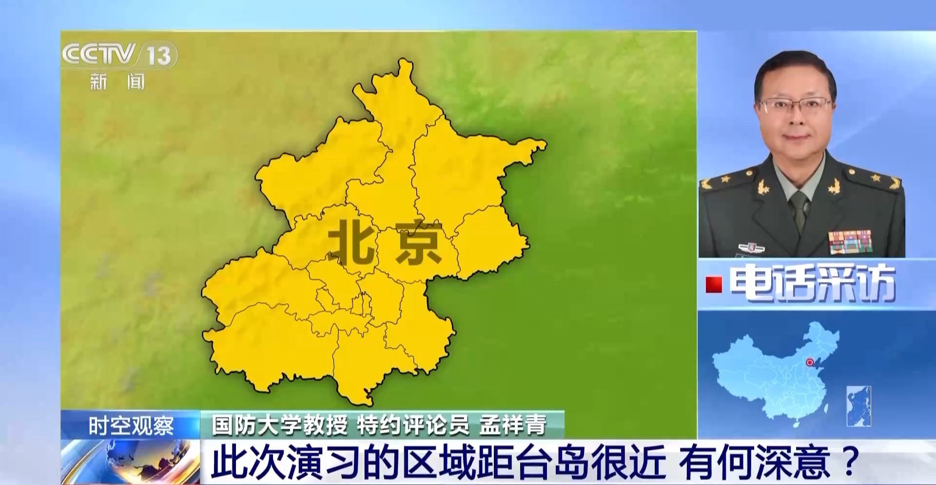国防大学教授、特约评论员 孟祥青:最近两天的演习,部署范围是非常广的。其中台岛的东部特别引起了关注。我们都知道,台岛东部是面向大洋的。过去台军一直幻想解放军的战力达不到这么远,达不到台岛东部。所以台军“台独”长期把台岛东部作为他的庇护所,作为台军的战力保存地。一旦发生战事,台军怎么保存下来?就是通过台岛东部,有人把它称为台军的舒适区、后花园,都是这个意思。所以这一次在台岛东部的部署,可以说有两大含义。