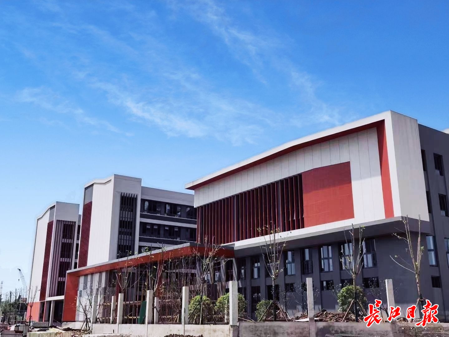 记者现场看到,校区内有一栋5层教学楼、一栋综合楼和一栋体育场馆楼,主体工程已经完工,外墙为红白相间,配备200米跑道及操场,目前正在进行周围绿化。