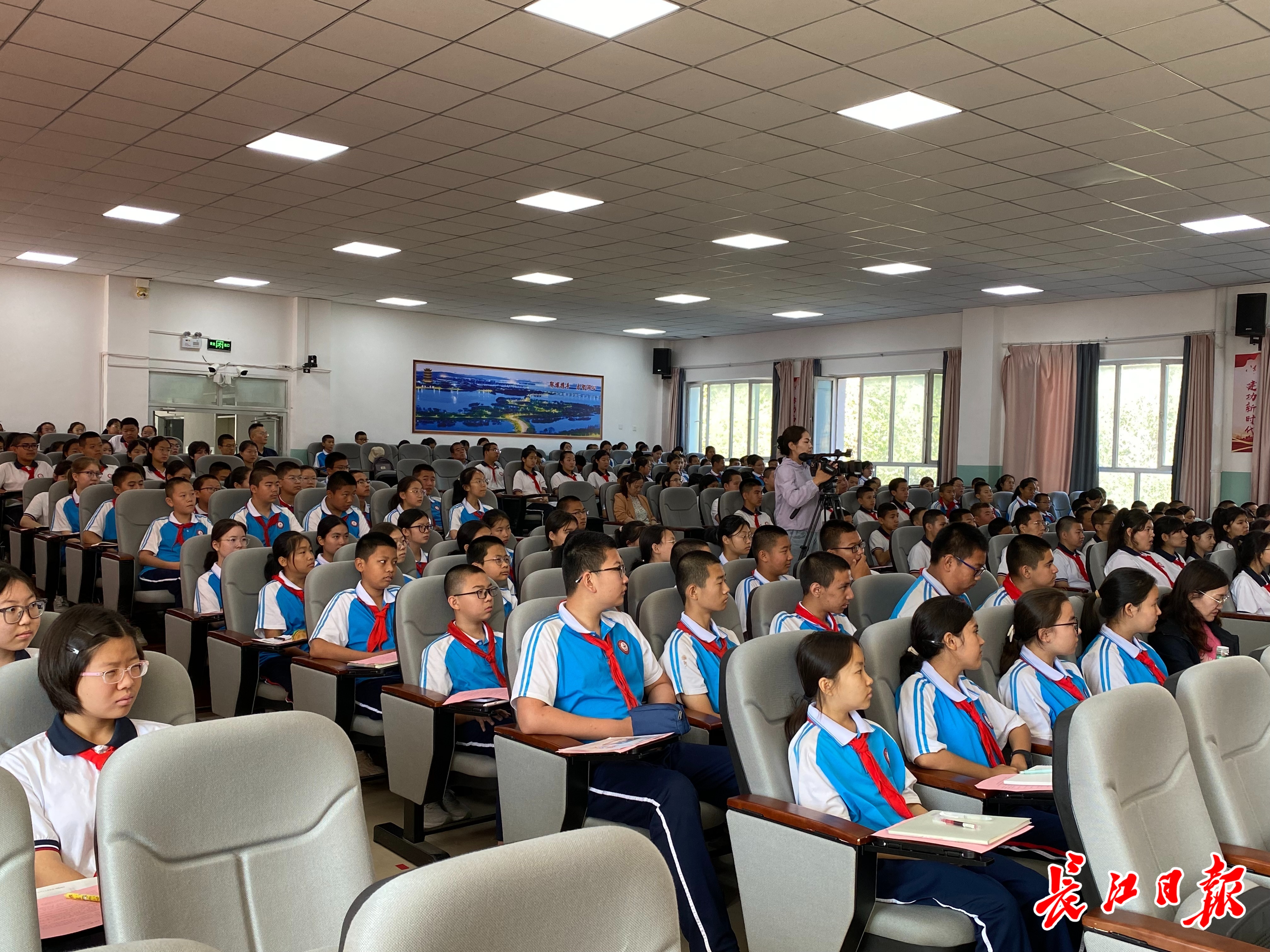 武汉市汉阳区作家协会主席伍剑在新疆博乐市第一中学教育集团“汉博情深话读写”公益讲座。记者胡义华 摄