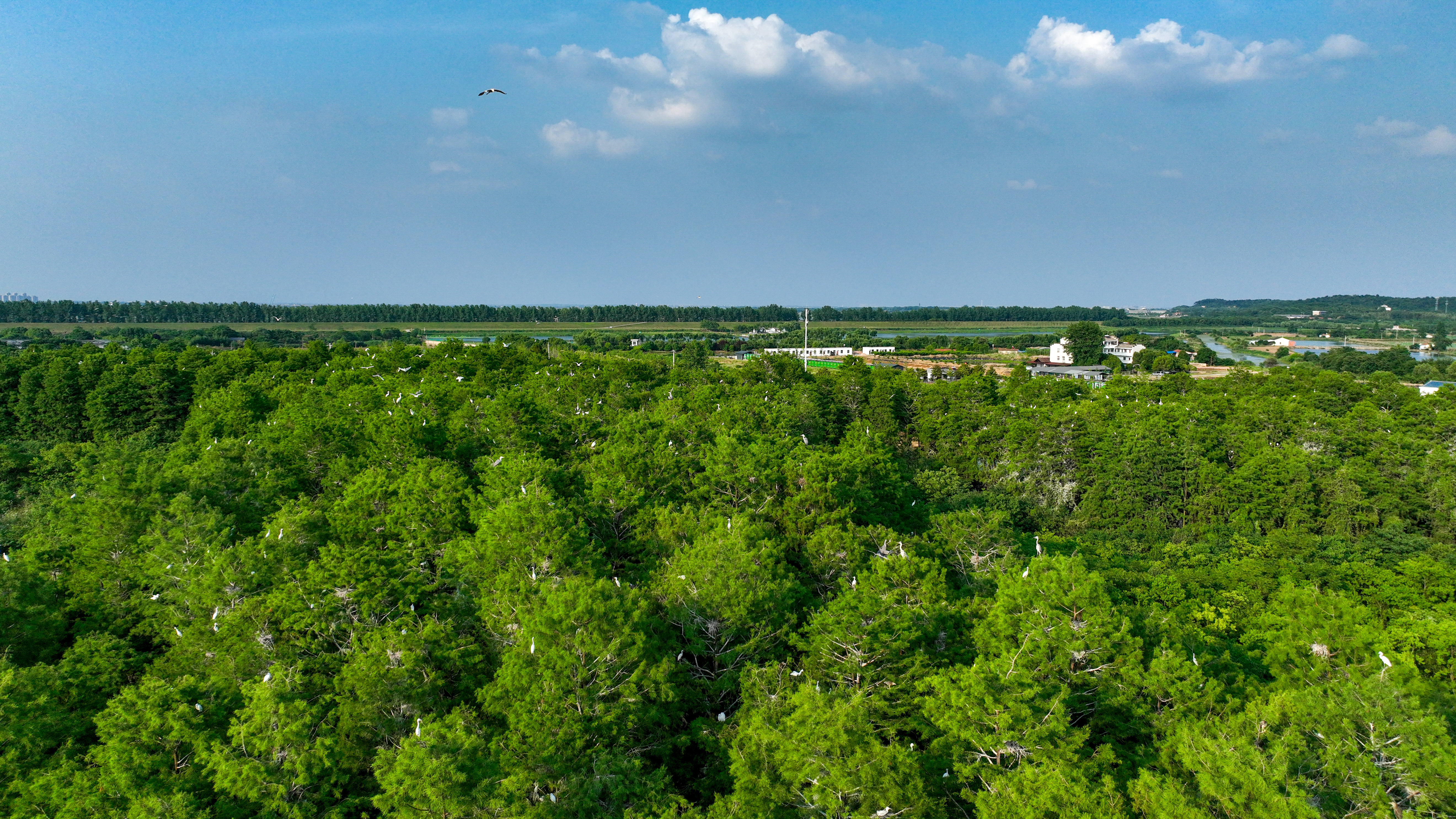 初夏正是鹭鸟的繁殖季。在武汉东西湖区东山街道,新发现一片人迹罕至的水杉林,上千只鹭鸟在林间翩翩起舞,一派生机盎然,宛如秘境。