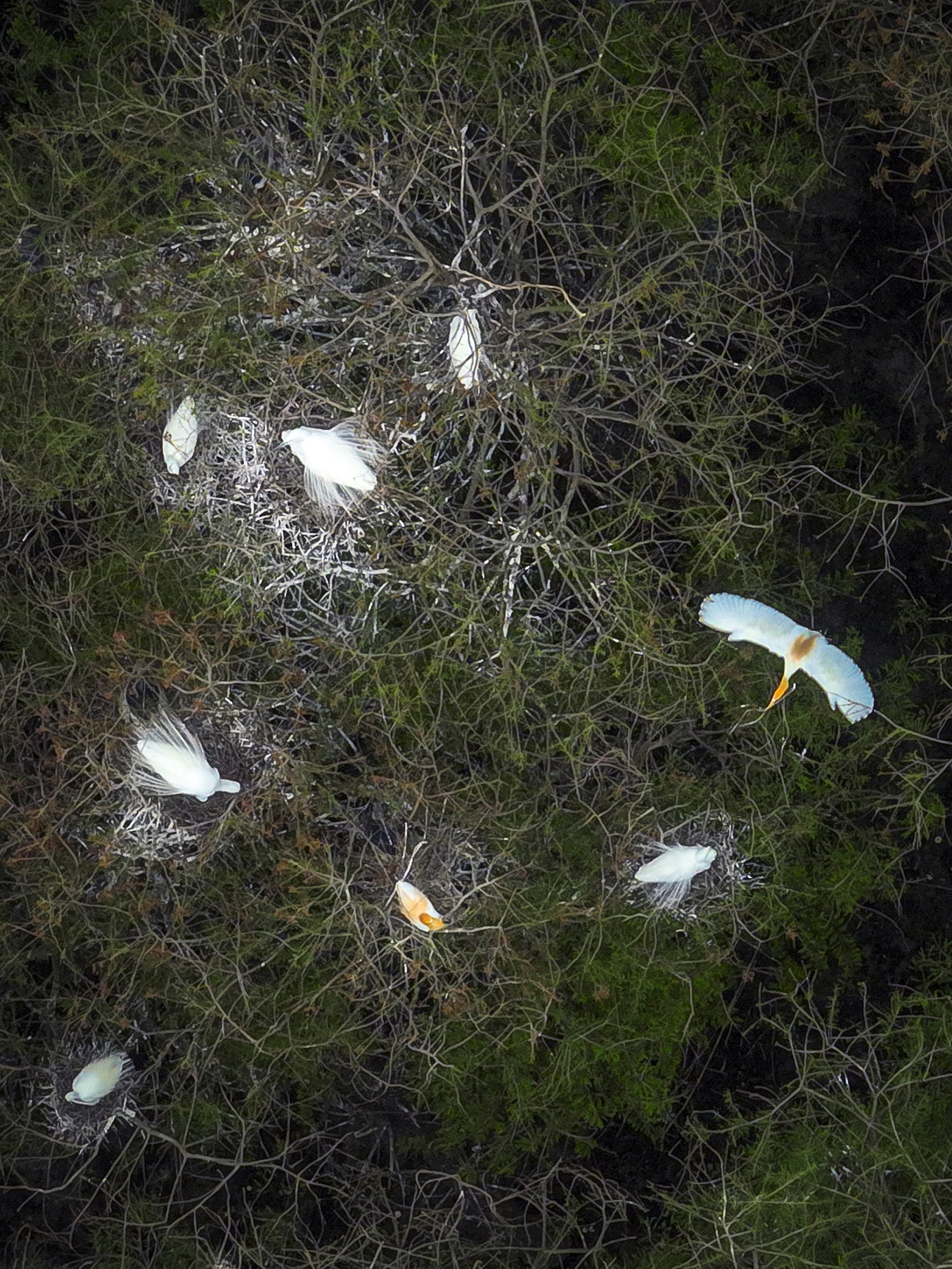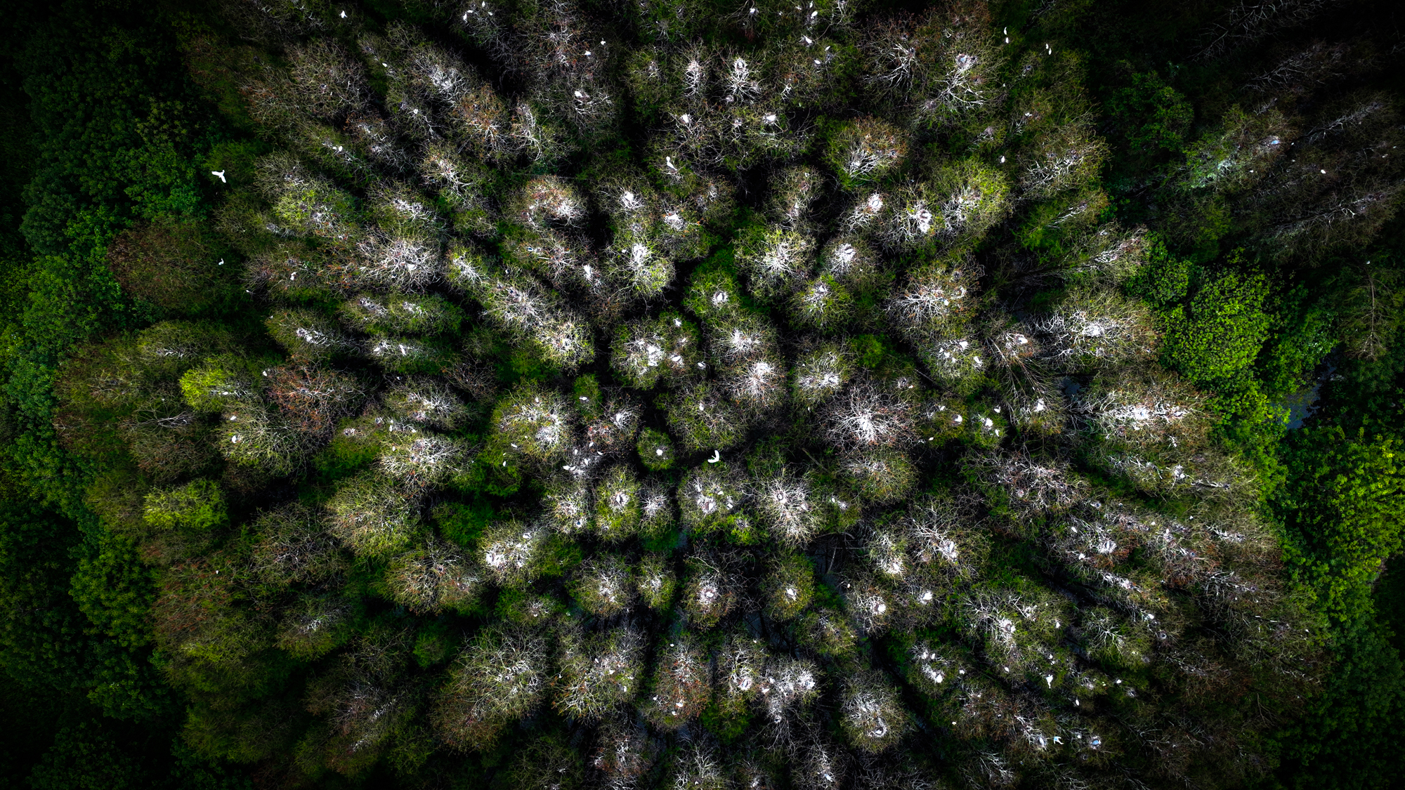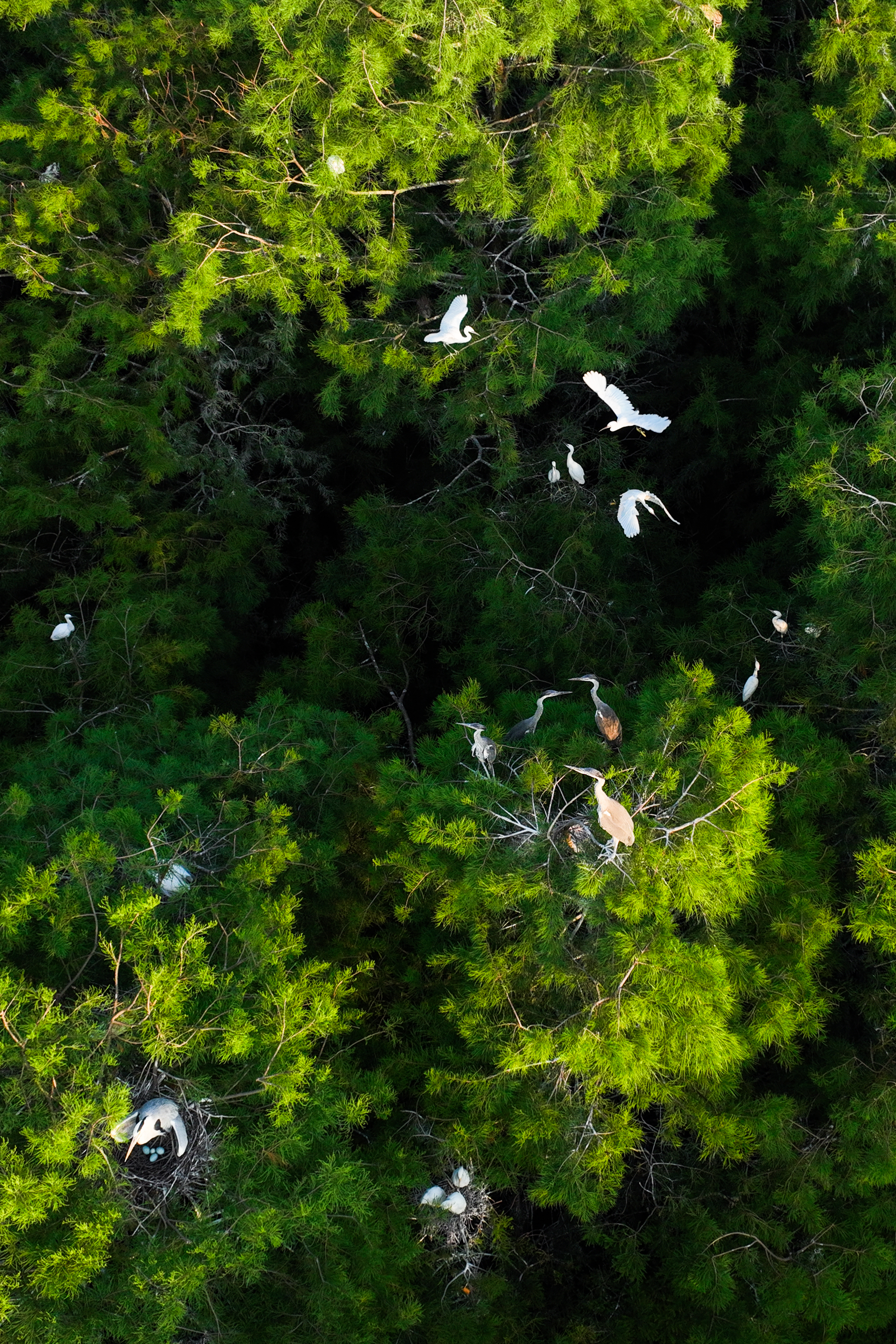 从空中俯瞰,林间筑满了鸟巢。