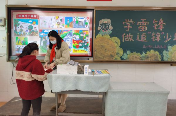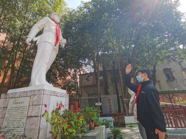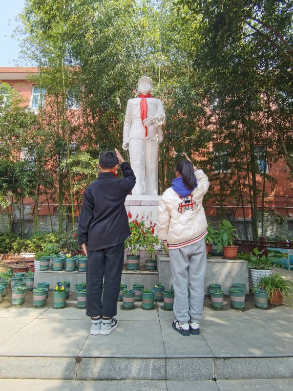 3月4日下午,大队辅导员黄瑶给同学们开展“学雷锋,做追‘锋’少年”主题队会,少校队员们站在操场边的雷锋塑像前,庄重敬队礼。王继承介绍,1991年少先队建队节之际,这座雷锋塑像在学校落成。30年间,校园里还建起了雷锋文化墙、雷锋主题馆,学校也成为武汉市青少年学雷锋实践基地、武汉市学雷锋活动示范点。2017年,该校修建了武汉市第一座开在中小学校内的雷锋主题馆,馆内陈列着300余件与雷锋有关的藏品。一年级新生入学后,会在这里上他们的“开学第一课”,由高年级学生当“讲解员”讲述雷锋叔叔的故事。