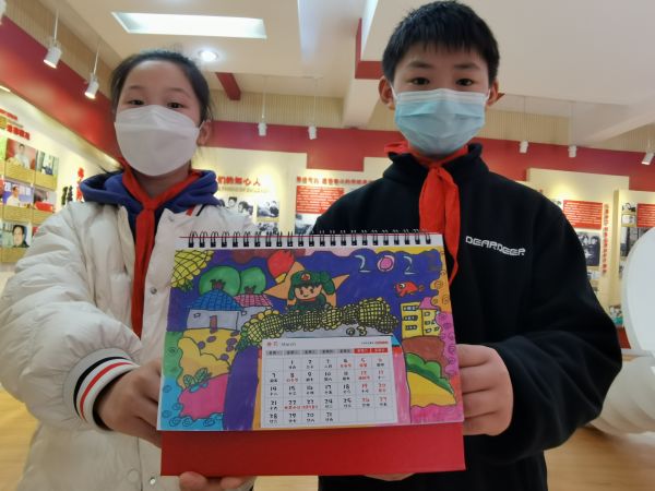 大兴路小学学生自己绘画、定制的学雷锋主题台历。记者刘嘉 摄