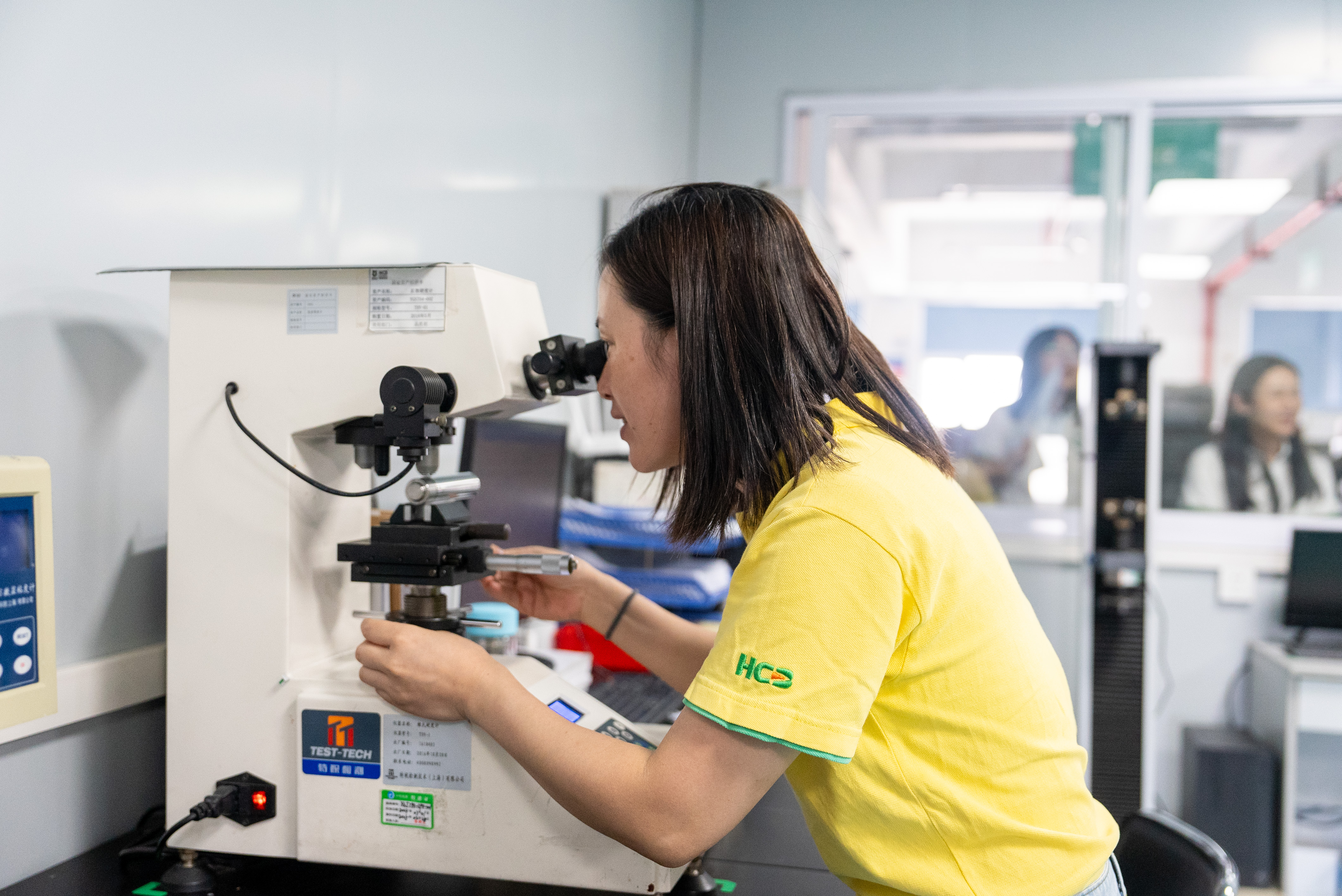工作人员运用显微镜查看锂电池。曲竞 摄