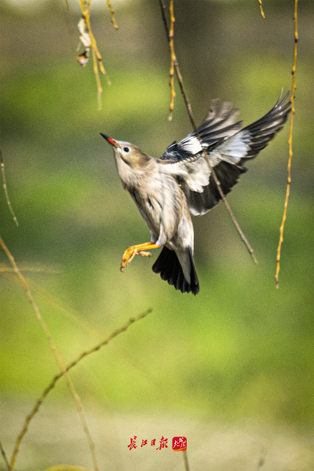 △ 汉口江滩丝光掠鸟 蓝江桥 摄