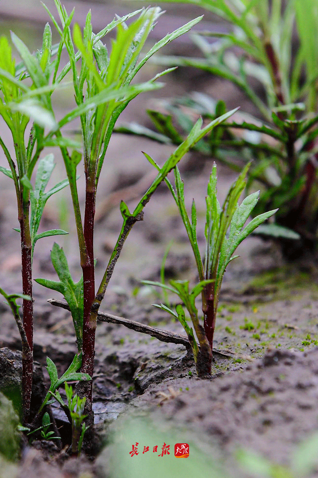 “蒌蒿满地芦芽短,正是河豚欲上时”,这“蒌蒿”就是武汉人爱吃的野藜蒿,眼下是它们旺盛生长的时节。在河岸道旁,芦苇、荻正生发出嫩芽。