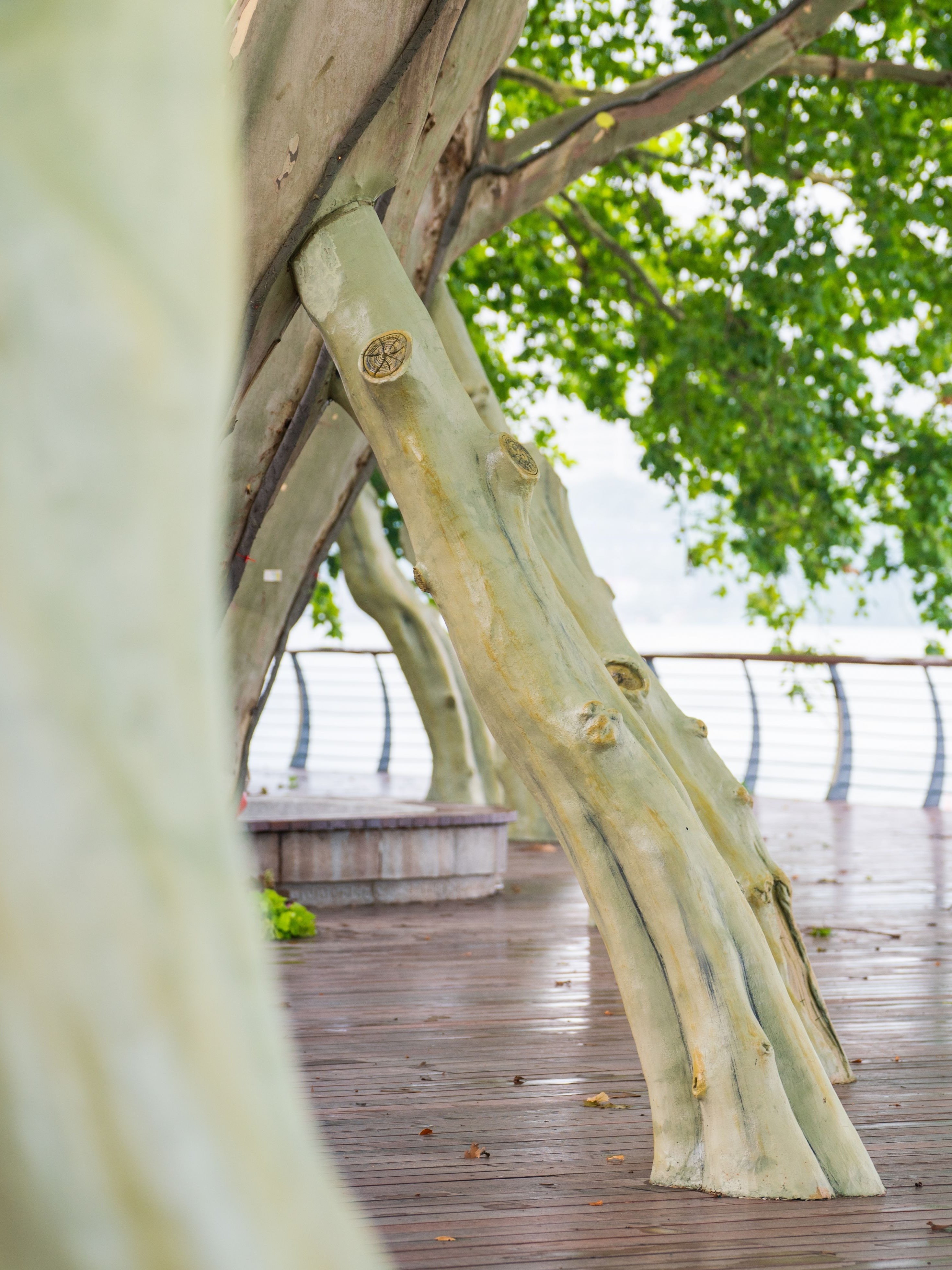 东湖绿道三期沿线的法桐安装了仿生金属支撑架。