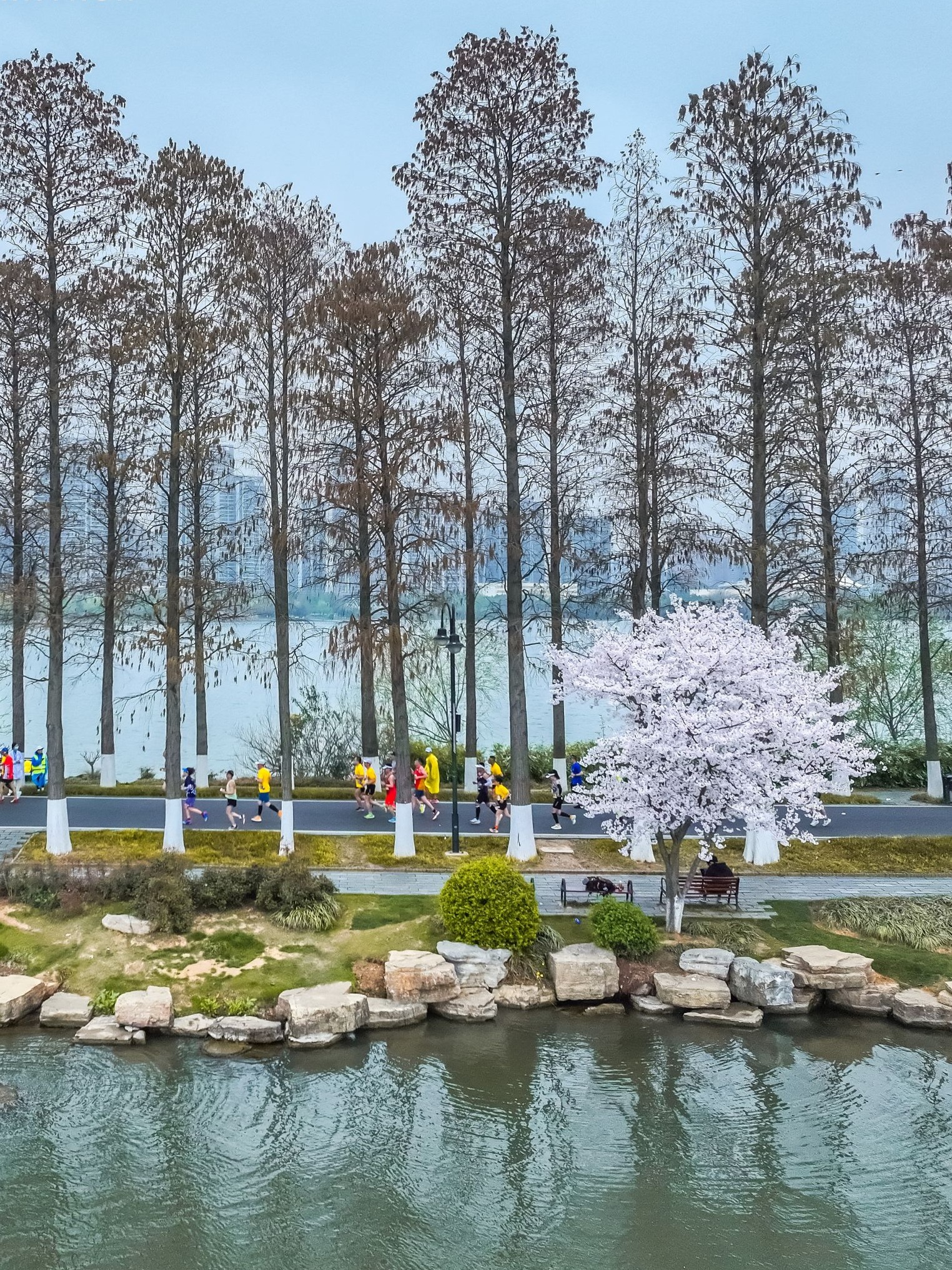2024年武汉马拉松,选手们驰骋在东湖绿道上。(资料图)