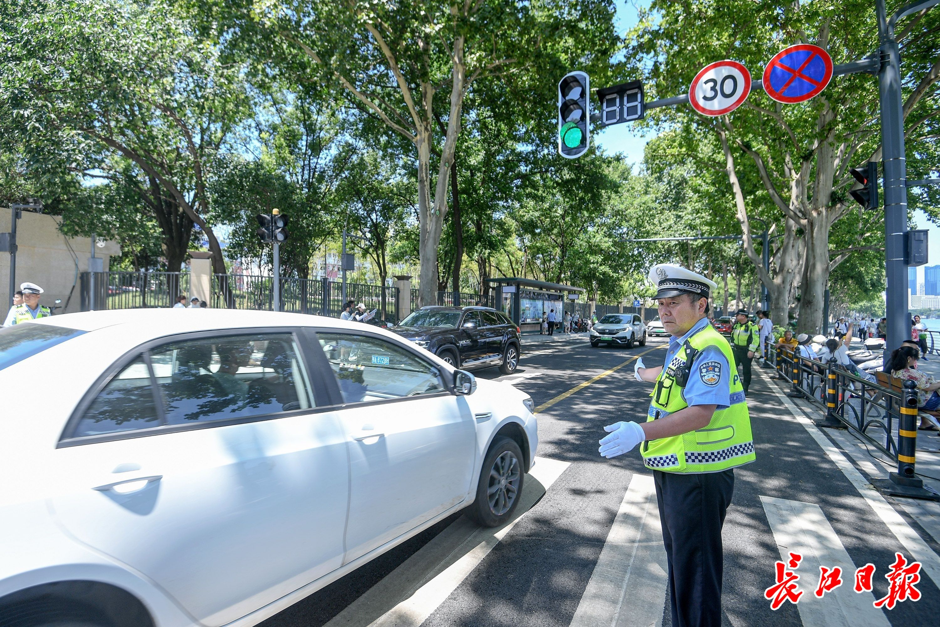 交警在东湖南路凌波门疏导交通。 长江日报记者 史伟 摄