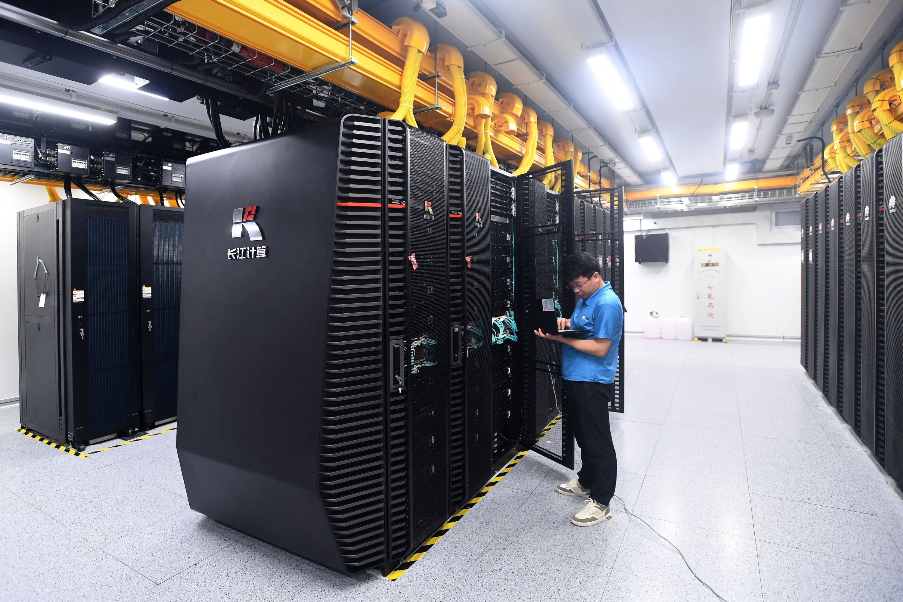武汉人工智能计算中心,工程人员正在调试设备。长江日报资料图