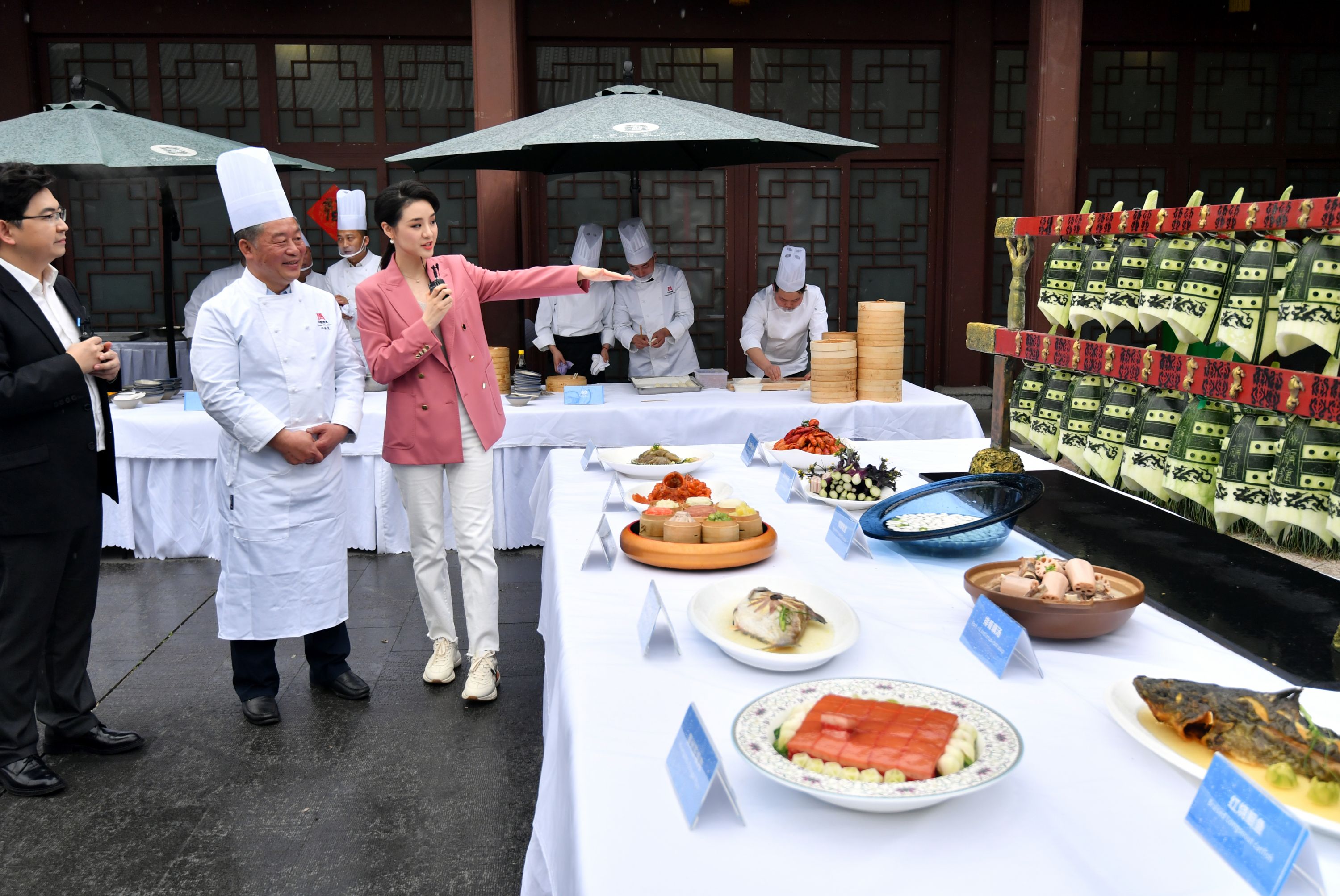 在黄鹤楼美食广场,楚菜大师卢永良向观众展示了豆皮、热干面、炸春卷、鱼圆等武汉特色美食,还有清蒸武昌鱼、莲藕排骨汤、沔阳三蒸、潜江油焖小龙虾、腊肉炒菜薹等十大楚菜名菜。