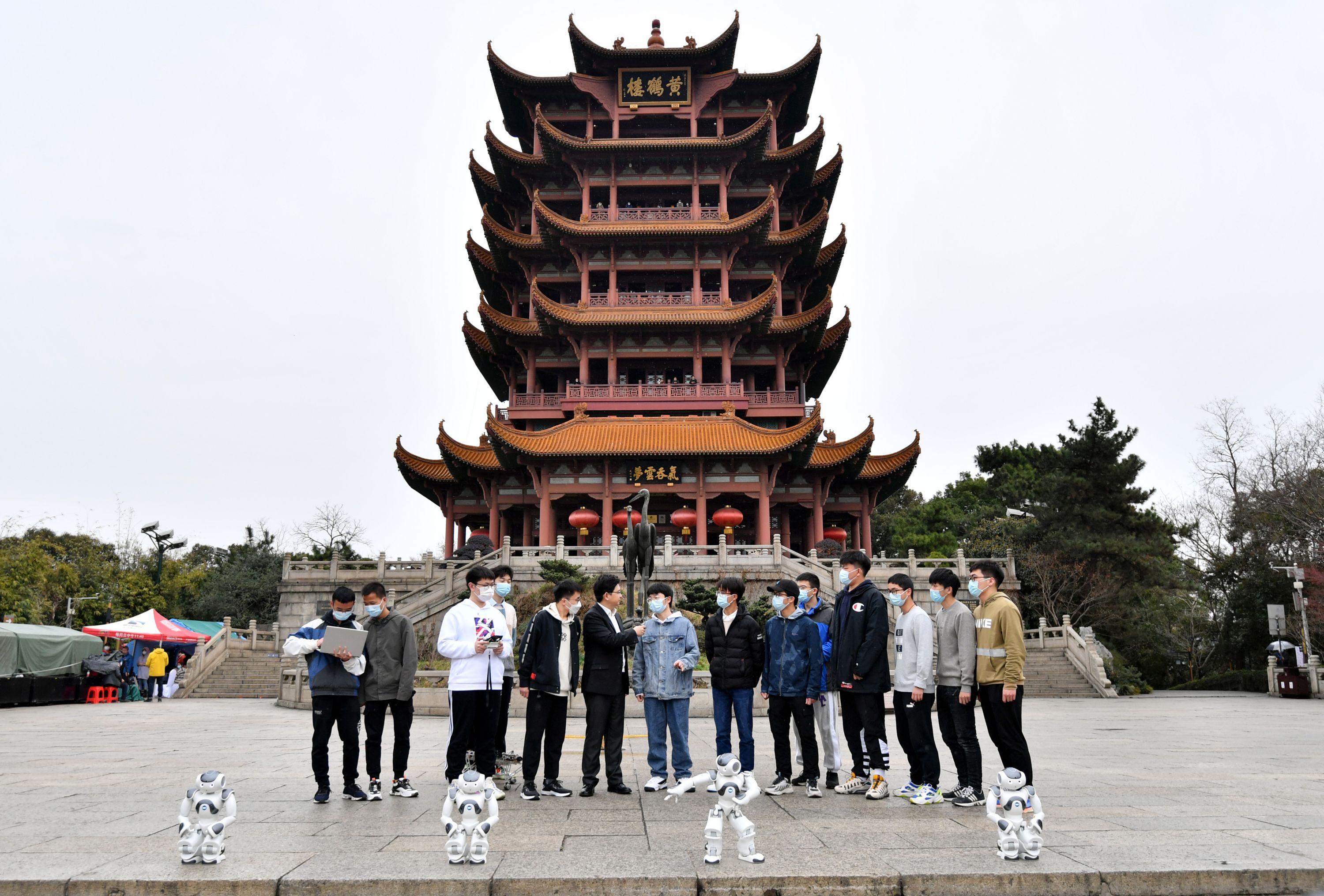 Wuhan is multicultural and has the largest student population of universities of any city in the world. Four brilliant robots, designed by college students in Wuhan, danced in the square before the tower. Robots can be programmed to imitate most human actions so they can be widely used to do many things such as picking up balls on tennis courts, working on retail or production lines, and performing precision medical surgery.
