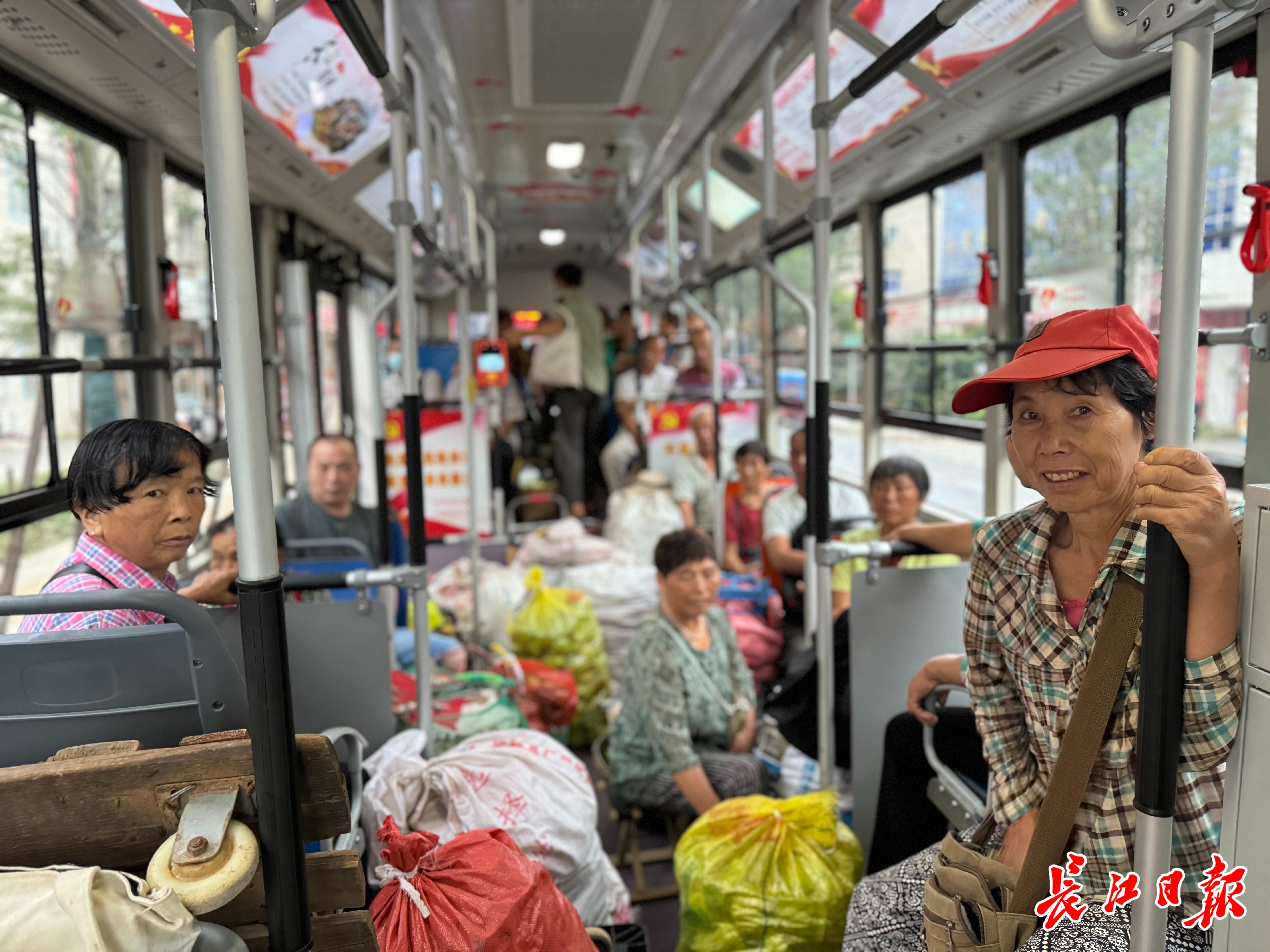 车上,戴着一顶草帽的董友华把菜担放下,把座位让给别人。他笑呵呵地说:“我很感谢这趟公交,对我们农民帮助很大,司机人都很好。”他说,自己今年72岁了,身体硬朗,子女们让他少做点注意身体,可他闲不住。
