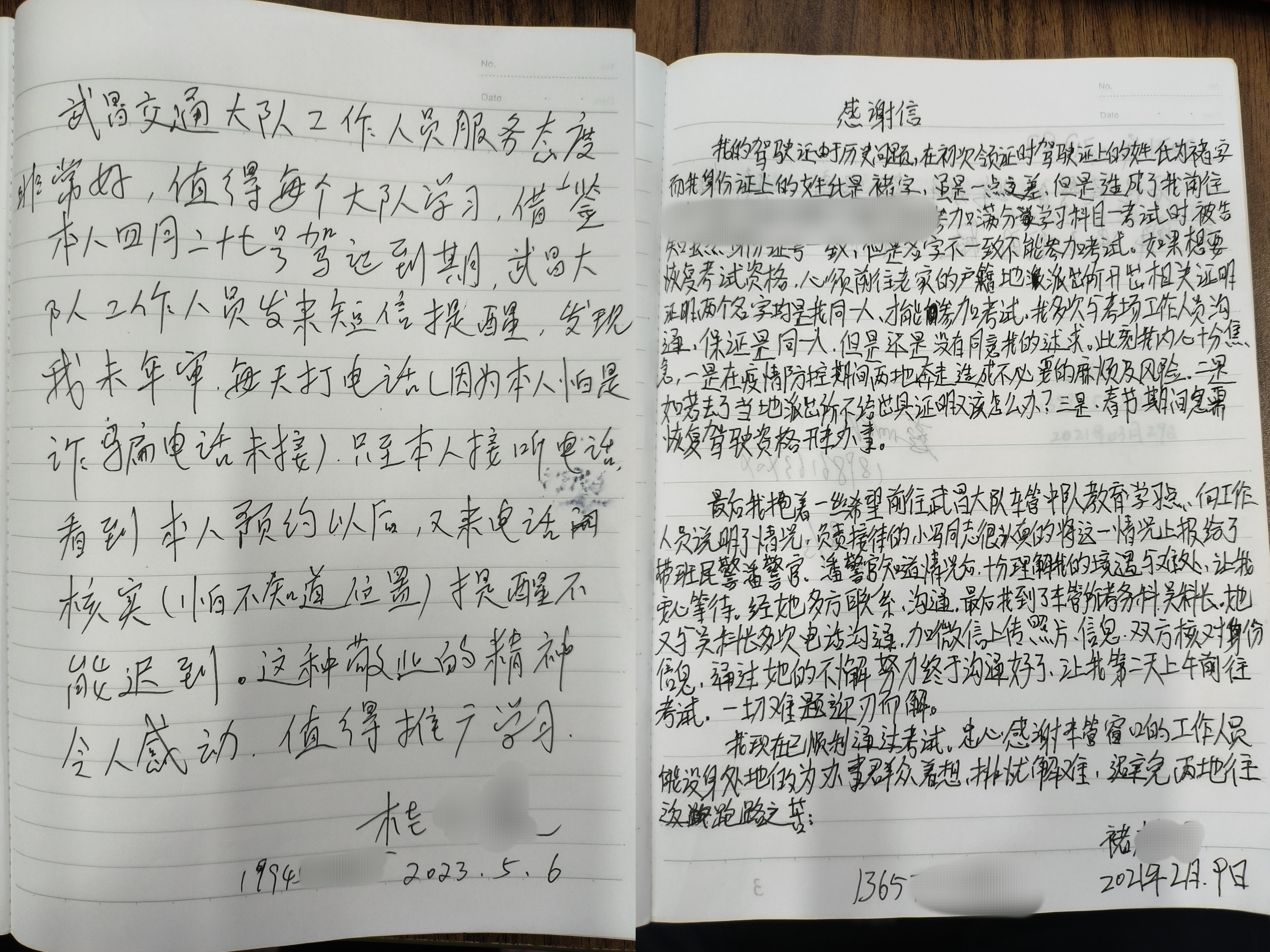在武昌区交通大队车驾管窗口,记者翻到一本写得满满当当的《来访市民意见簿》,市民褚师傅用满满当当的一页纸写下他的感激。