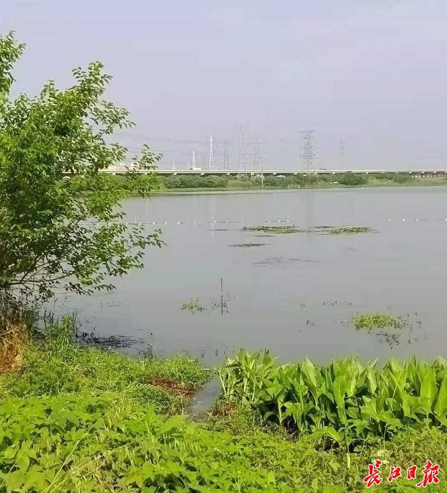 5月16日,长江日报记者穿过锦绣豪园小区,来到烂泥湖湖边。雨后的烂泥湖水面开阔,波光涟涟,湖中还有水鸟嬉戏,湖边岸线曲折、绿草如茵,呈现出一种自然、和谐之美。