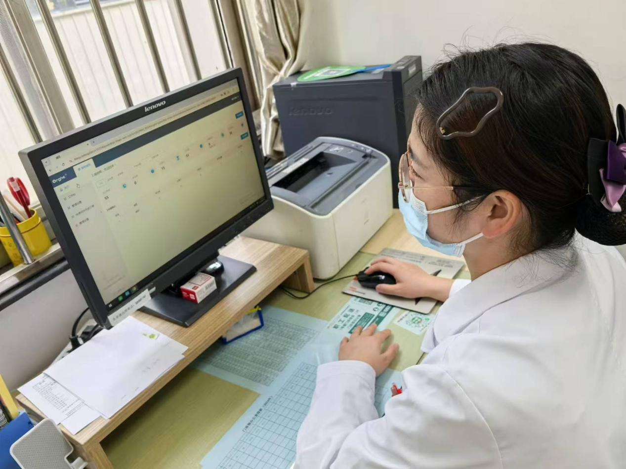 工作人员在武汉大学中南医院互联网医院管理后台进行操作。