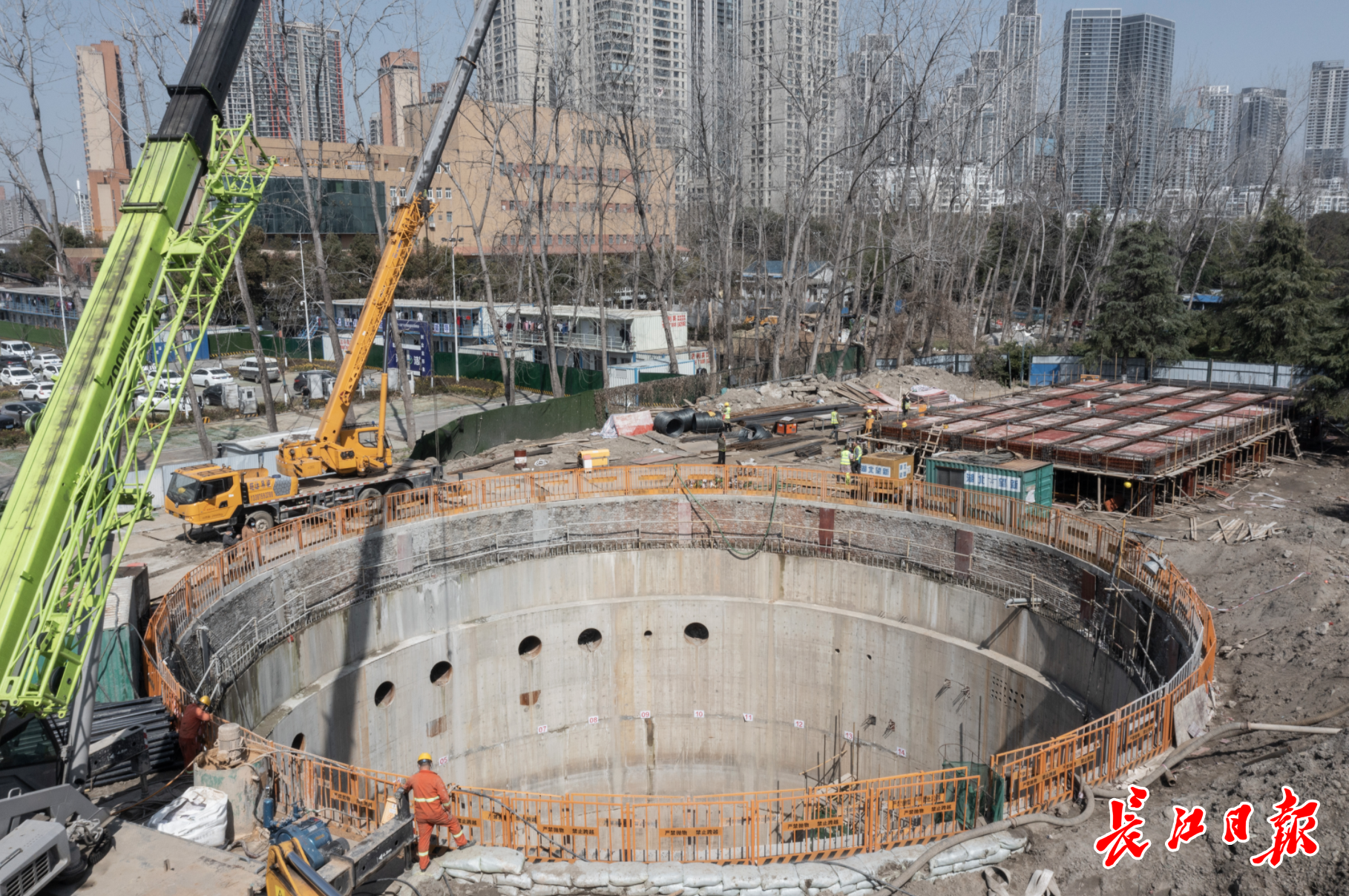 3月9日,长江日报记者在长江二桥附近的江岸区四唯港区两艘吊装船上看到,经工作人员操作,起重机正在把粗大的取水管道缓缓放入长江。这里是江水源可再生能源站的取退水口。“目前,能源站机房已封顶,整体项目进度已完成80%。”中建三局基础设施建设投资有限公司江水源可再生能源站项目技术负责人王维介绍,为确保如期供能,建设方正加速推进取水管铺设工程。