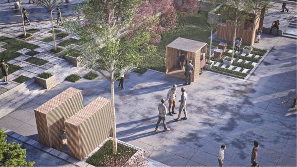 记者看到,火柴盒作为最关键的实体因素,被巧妙融合在他们的设计方案内。他们在“口袋公园”里设计了体验盒子、活力盒子、休憩盒子三个形似火柴盒的大空间,来满足周边居民的不同需求。
