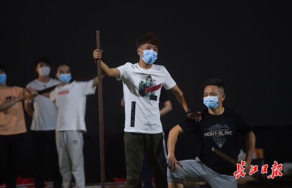 2019年起,武汉楚剧院就对《万里茶道》进行大规模改编,余维刚的角色成为主线,加戏、加难度,以求更全面地展示他的文武功底,但突如其来的疫情,让改编“暂停”了。“宅家”的日子里,剧本、唱腔、动作的改编都在线上进行,单是余维刚的武戏,就改了不下10稿。4月8日一到,他就戴着口罩、穿着防护服,回到了排练场。一切都还在逐步恢复中,安全起见,不开灯、不开空调、没有乐队、没有同台的演员,只有舞台上厚厚的灰尘,余维刚独自一人开始练功。“不能等,如果等条件都到位了再练,耽误的就是大家的时间。”很快,演员来了、乐队来了,大家都回来了,每天戴着口罩排练,节假日也不休息。