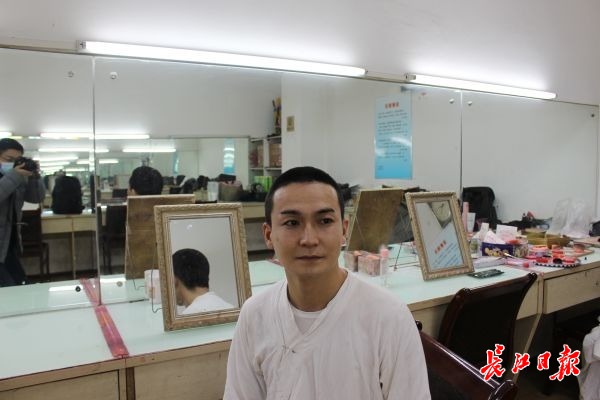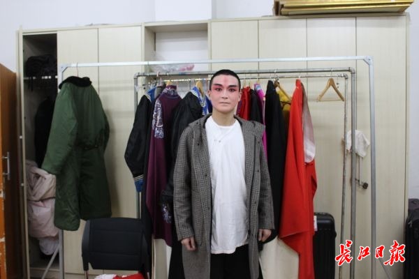 去年12月,卸妆后的余维刚接受长江日报记者采访。(资料图) 长江日报记者万建辉 摄