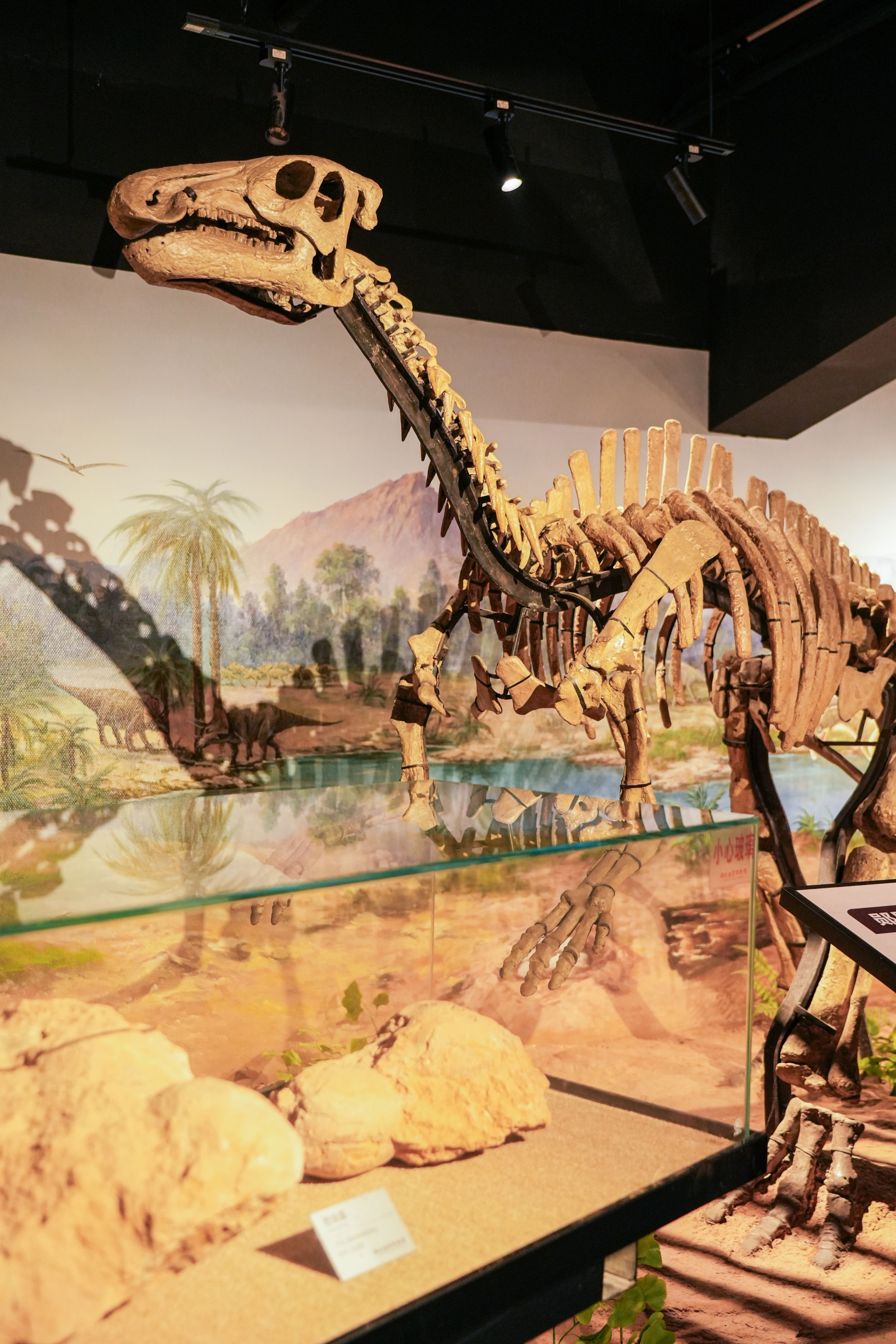 大大小小的古生物化石,吸引了正在逛馆的游客驻足观看。其中,身长6米、高3米的“湖北郧县龙”化石让不少小朋友投来了崇拜的目光。刘鸿飞介绍,这是湖北省发现的第一条较为完整的恐龙骨骼化石,也是唯一以“湖北”命名的恐龙属种,“产自云县地区,是我们湖北老乡”。恐龙出现于三叠纪末期,繁盛于侏罗纪,灭绝于白垩纪,湖北的恐龙化石出土时代都是白垩纪晚期,属于恐龙种群中较为晚期的类型,对研究恐龙灭绝有一种指示意义。可能这位湖北恐龙也没有想到,在6600万年后会在武汉最繁华的商圈“上班”。