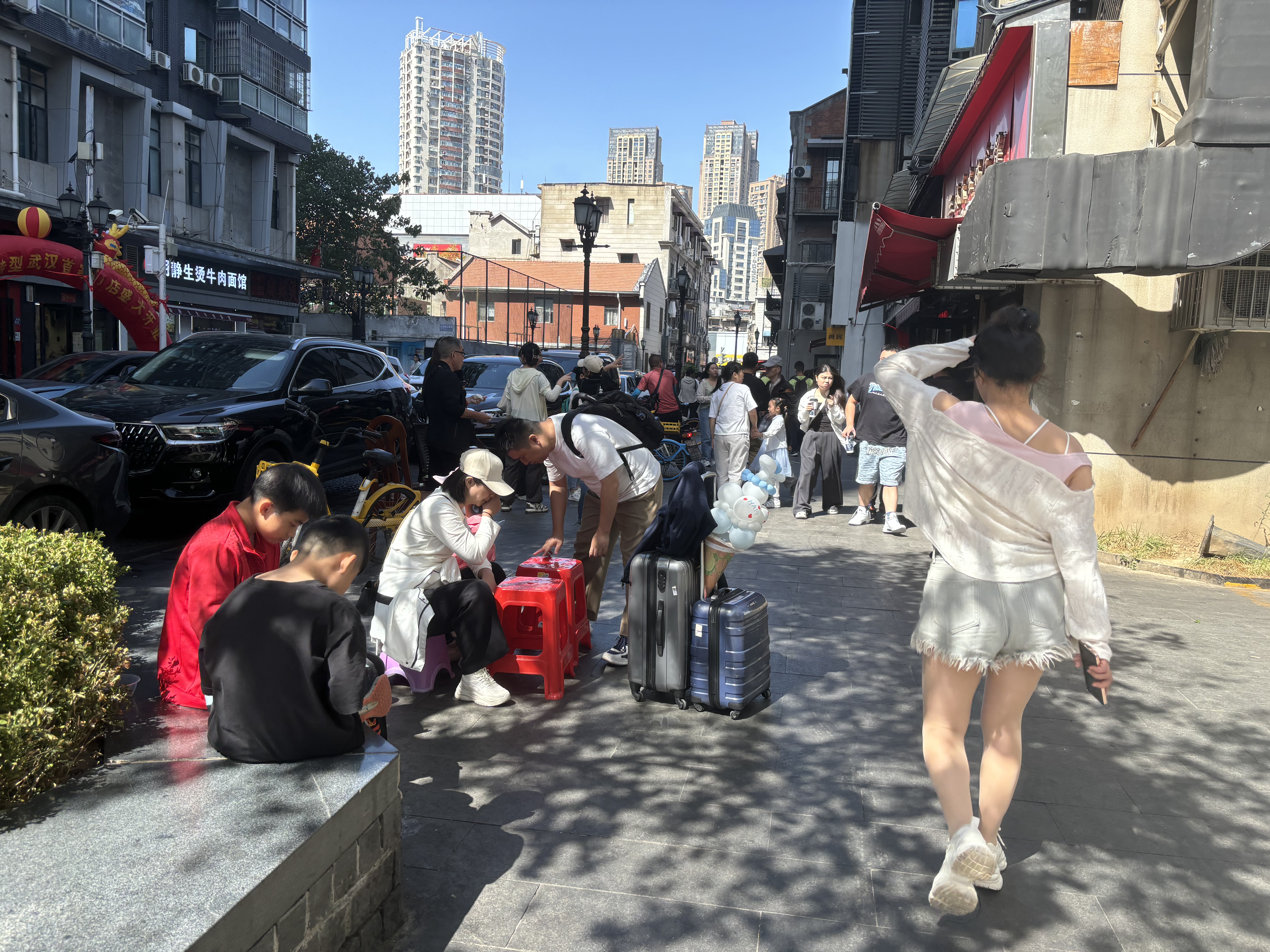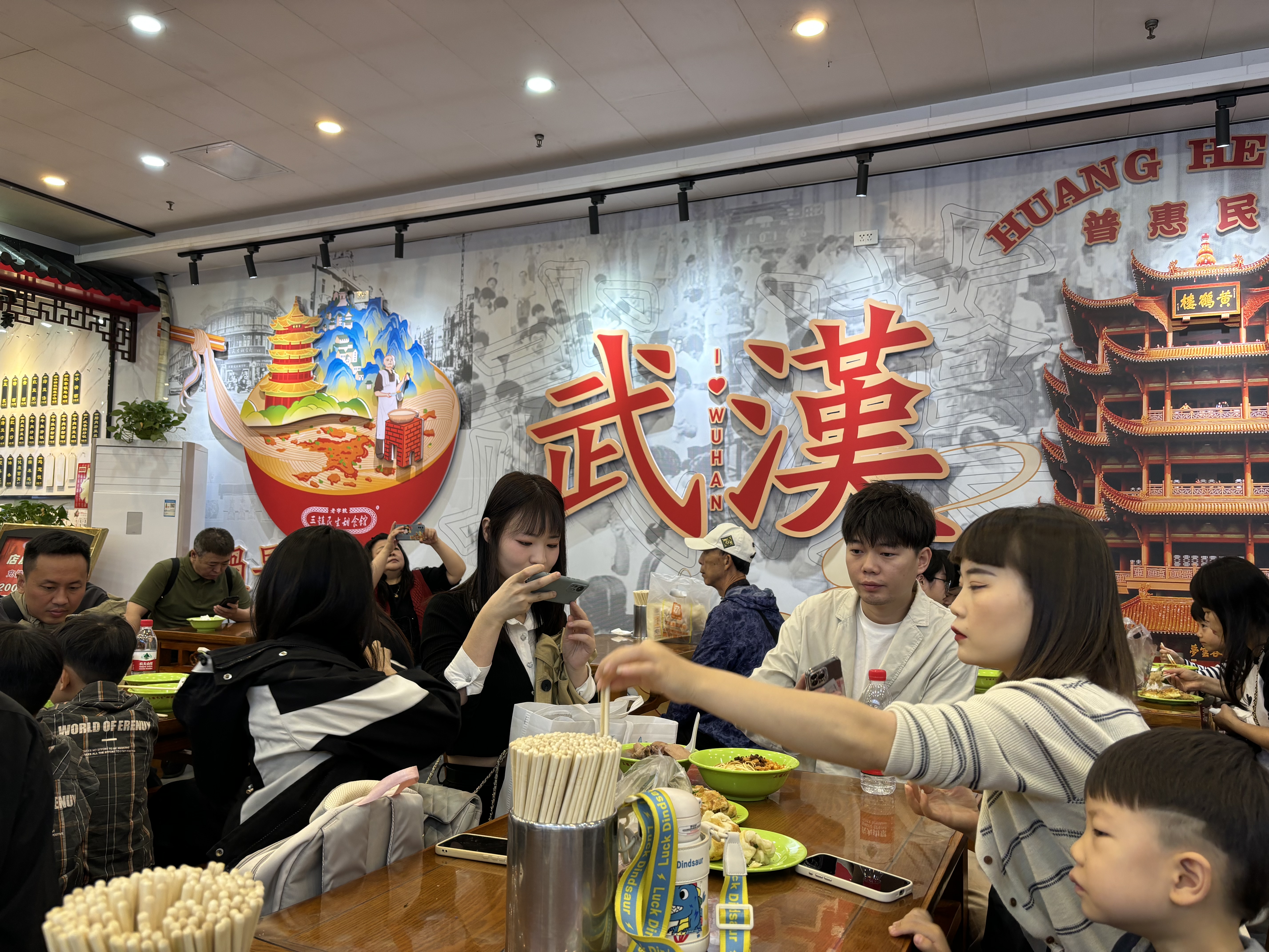 记者注意到,山海关路新开了10多家新店铺和小摊子,许多店铺也排起长队。爷爷不泡茶店铺前,一杯奶茶要等半小时左右,很多游客端着热干面,一边吃一等奶茶。牛一堂牛肉生烫粉、学子豆皮、于记大锅牛杂、老武汉热干面、李记糊汤粉、孙氏豆皮都是新开的店铺,全部排起长队。“没想到人这么多,我们来这里,吃的不仅仅是武汉的早点,也感受到武汉人热烈的生活。”来自山西的一对夫妇带着孩子跟着长队慢慢地往前挪,“这个点出来,可以将过早吃成早外餐,吃饱了就去汉口江滩逛一逛。”