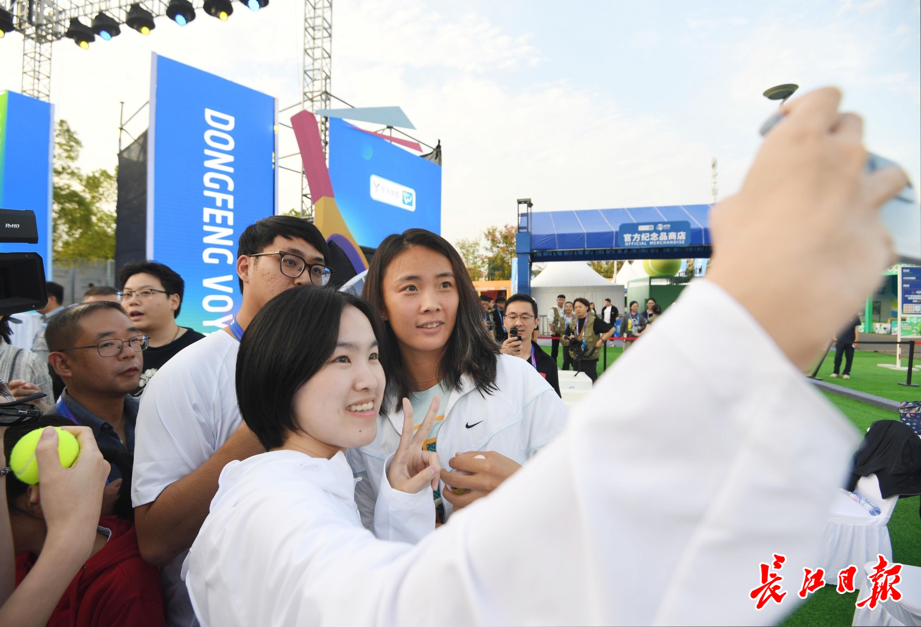 球迷与袁悦合影。 长江日报记者高勇 摄