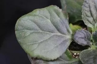 母本叶型为elliptic,每花序有花2-4,花量较少。与母本相比,其叶型为ovate,叶片更厚,且花量增加很多,每花序有花20。父本叶色为绿色,叶型为ovate,叶巨大,叶长16~28cm,叶宽15~25cm。