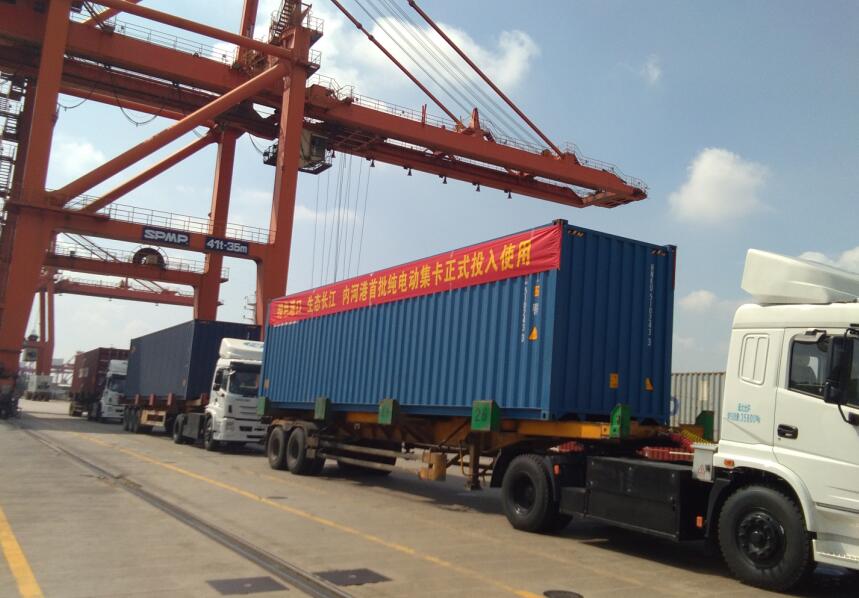 运营纯电动集装箱卡车投入运营。记者汪文汉 摄