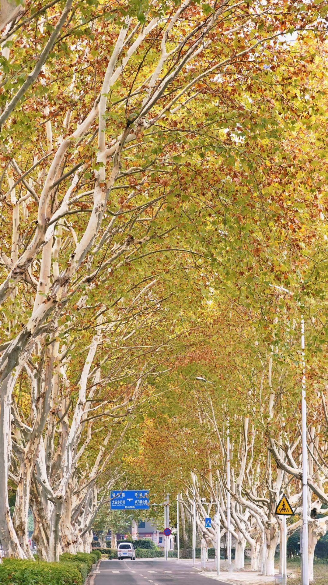 漫步街头,金黄的梧桐树绘就一幅绚丽的秋景,跃入眼帘,触动心弦。每片梧桐叶,似经秋之手笔,精心点染,从边至心,渐染金黄,璀璨深邃。阳光下,它们闪烁绸缎光泽,宛如自然珍藏的金色箔片,熠熠生辉。风中,有的叶子翩翩起舞,如金蝶展现最后的华章;有的叶子则悠然飘落,踏上静谧归途,铺就一地金色地毯。这金黄梧桐,不仅为城市添彩,更承载秋的寂寥与岁月的轮回,讲述着周而复始的光阴故事。摄于洪山区邮电路。