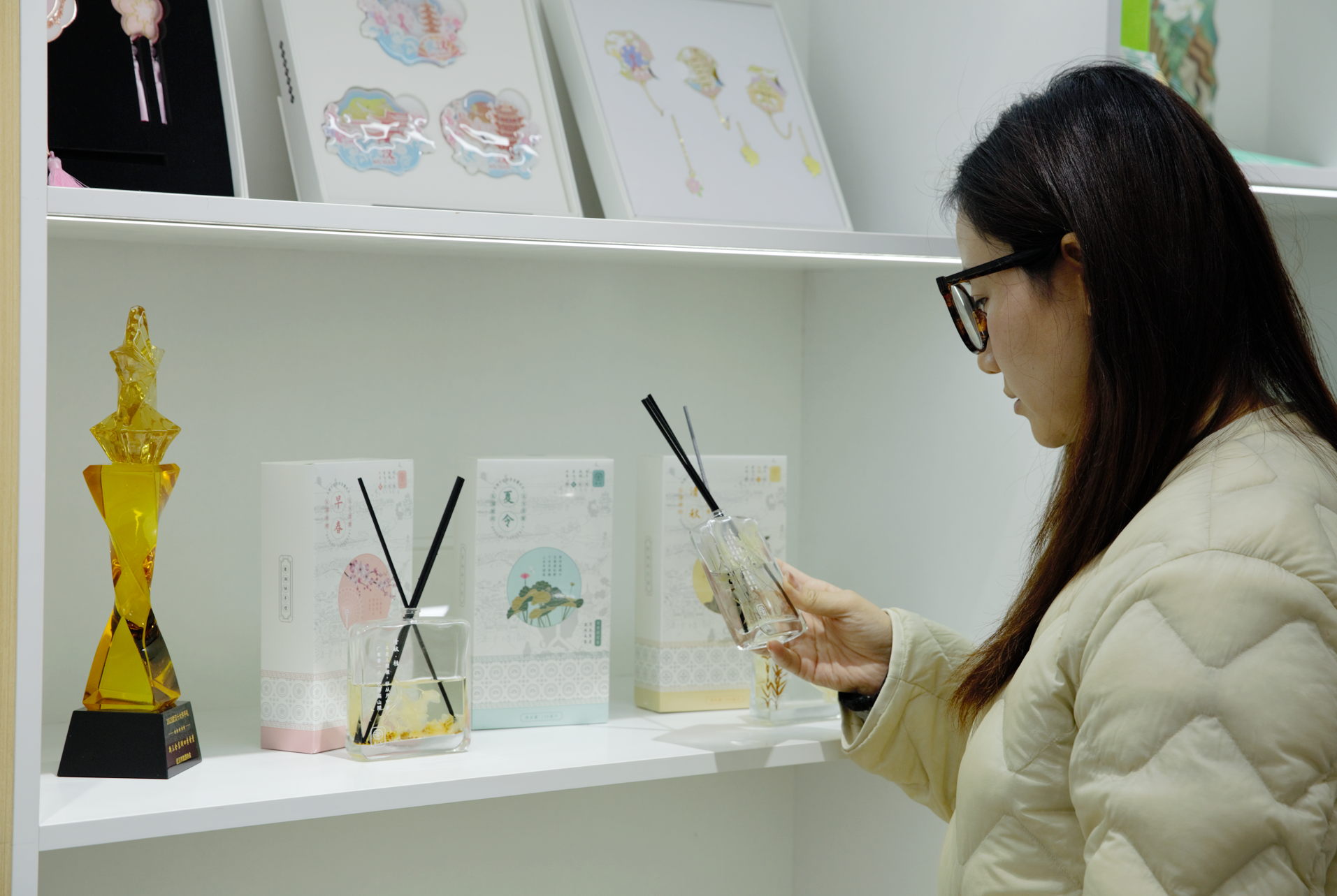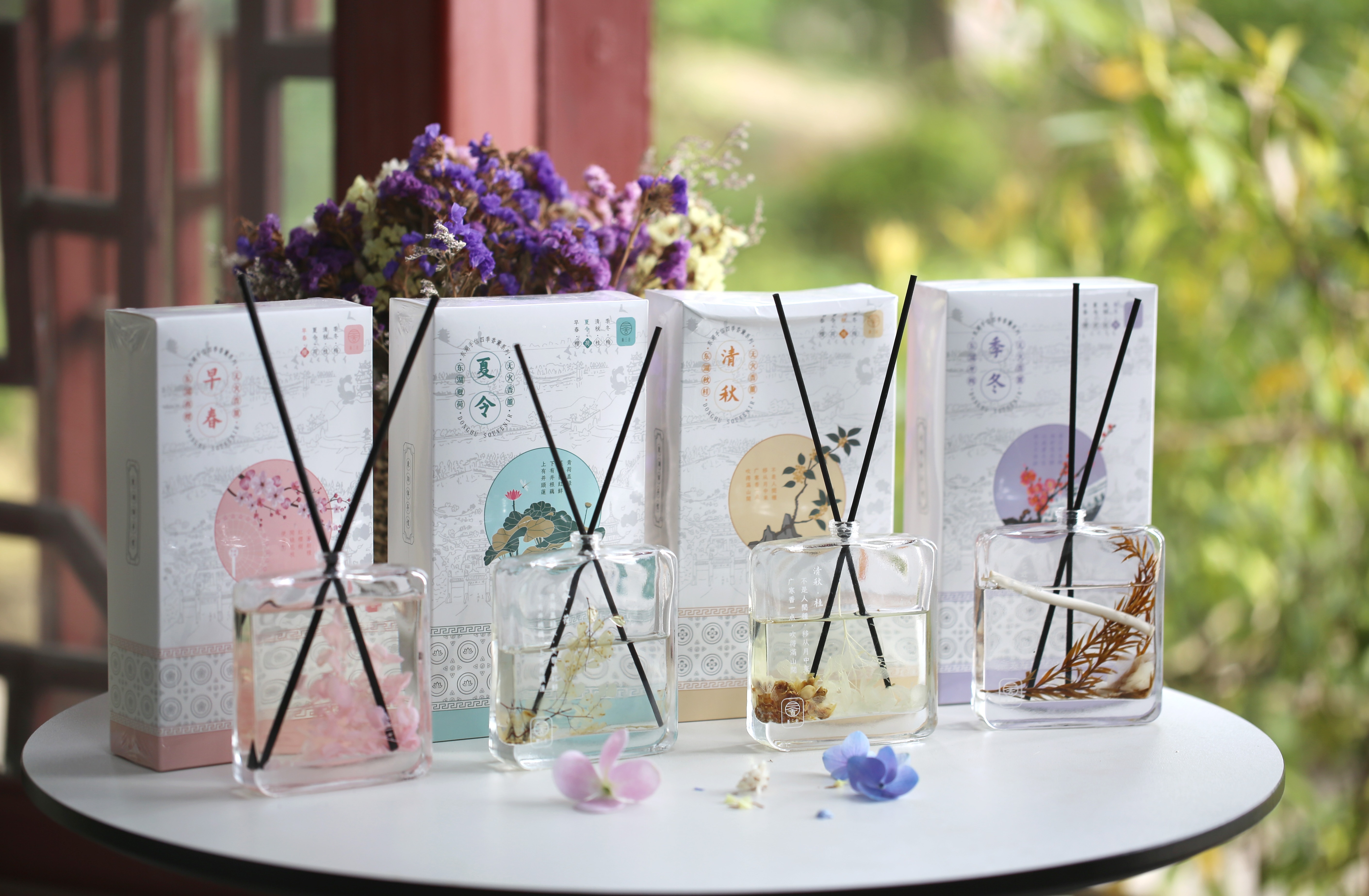 “香味设计是基于武汉东湖四季里最具代表性的花朵来确定的,春樱、夏荷、秋桂、冬梅,每种香味都精心调制。”周雪玲介绍,设计团队通过对于东湖地域特色的挖掘,从东湖四季的自然美景中汲取灵感,提出了将四季变换的花香融入香薰产品的创意概念。樱花是武汉东湖春季的标志性景观,樱花香薰传达了武汉东湖春天的美丽与浪漫,樱花香薰裹挟着春风的清新,让人仿佛置身于东湖樱花盛开的季节,感受到春天的生机与活力。荷花是东湖夏季的代表性花卉,荷花香薰给夏日带来一份淡雅与宁静,让人在炎炎夏日中感受到一丝清凉与舒适,展现了武汉东湖夏天的宁静与优雅。桂花是武汉东湖秋季的芳香代表,桂花香薰传达了武汉东湖秋天的甜蜜。桂花香薰散发着秋天丰收时的甜蜜与温馨,让人联想到金秋时节的丰收与喜悦。梅花是东湖冬季的傲骨之花,同时也是武汉的市花,梅花香薰展现了武汉东湖冬天的坚韧与不屈。