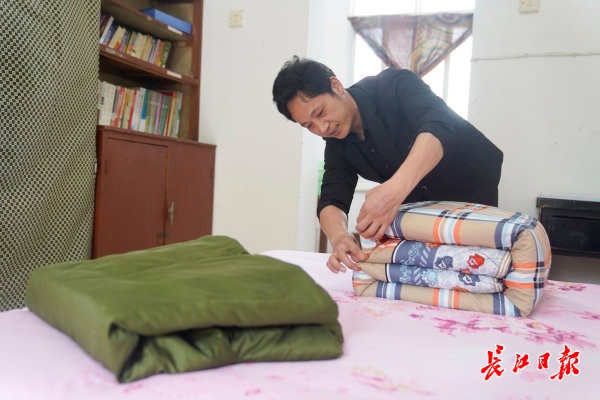 作为从黄继光生前所在部队空降兵某部退伍的刘佳学在内务方面,依旧保留着部队里的生活习惯。记者 彭年 摄