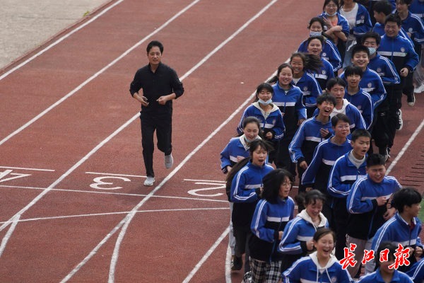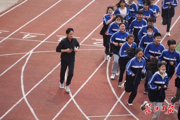 刘佳学教师和同学们一起跑步。记者 彭年 摄