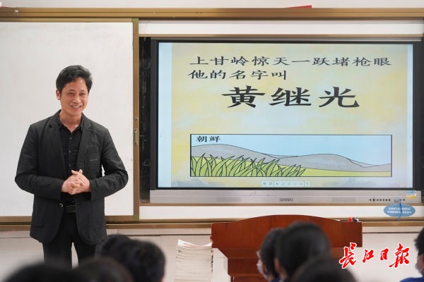 刘佳学教师给同学们读黄继光生前的家书。记者 彭年 摄