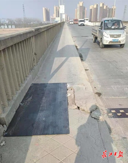市民魏先生称,他住在黄陂武湖,时常骑电动自行车经过新河大桥。3月13日上午,魏先生经过新河大桥前往谌家矶,行至大桥中部时,发现非机动车道上有半米多长的塌陷,电动自行车无法通行。