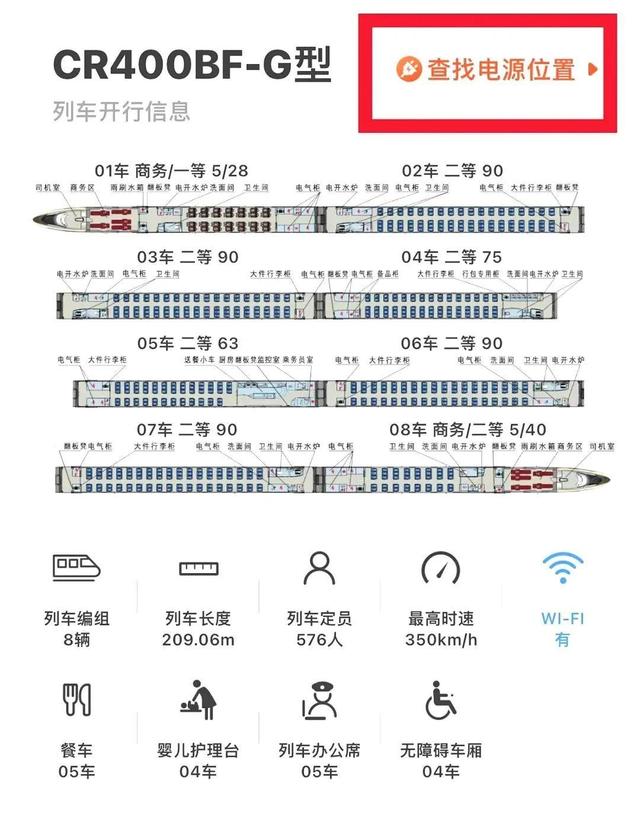 由于车型、座席差异,动车组列车的充电位置也有差别。