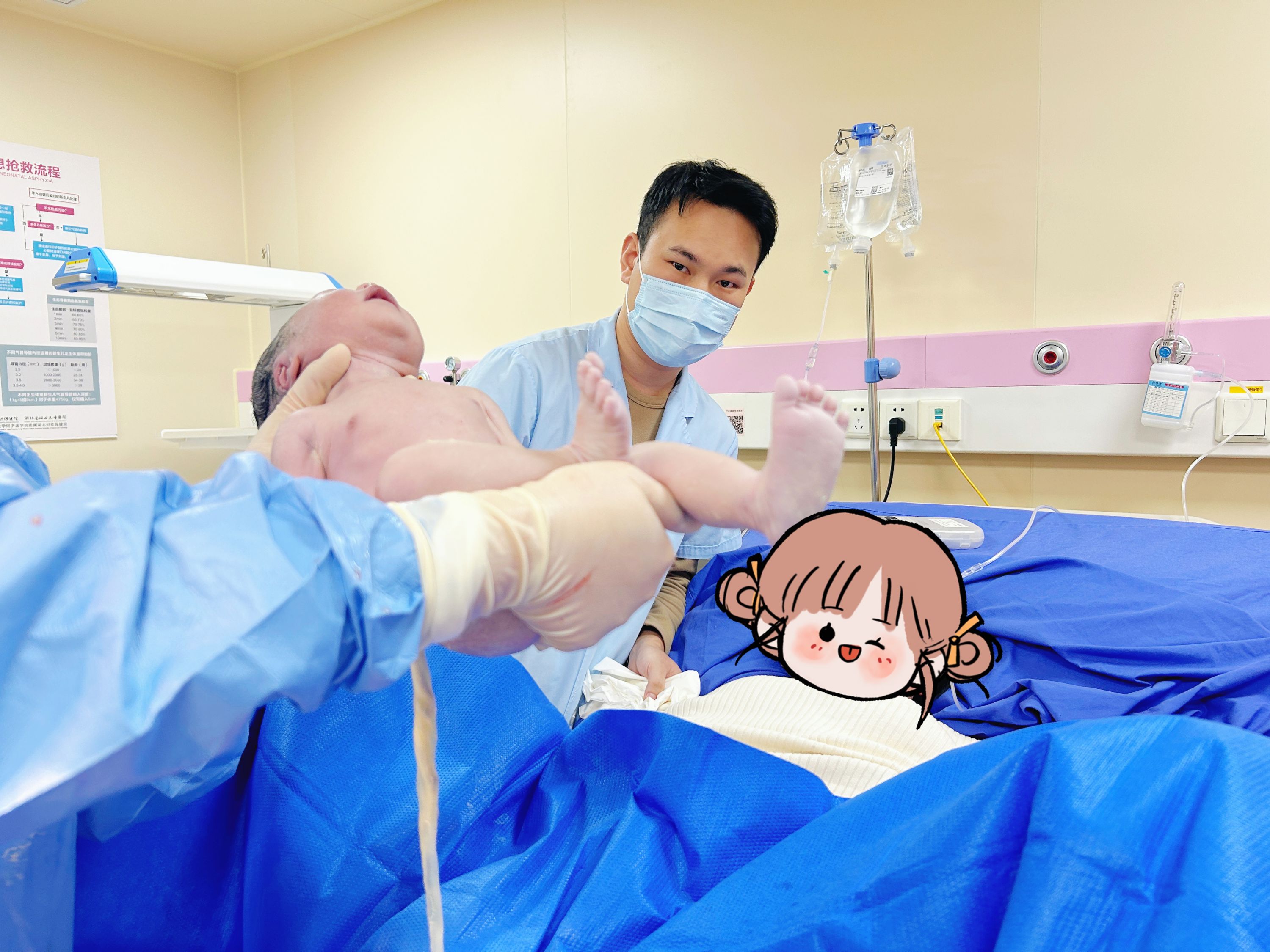 所有人配合默契,一个男宝宝于零时11分顺利出生,响亮的哭声令这对新手爸妈热泪盈眶,夫妻俩为宝宝取名“小甘蔗”,寓意甜蜜幸福。